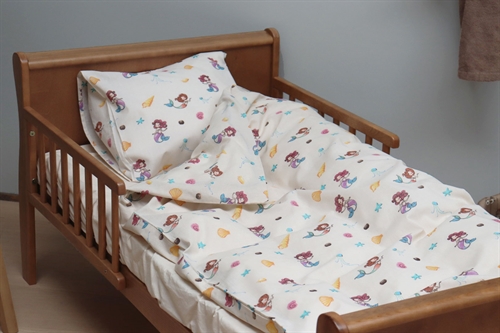 Home » Bedding Save35% By Mats Junior bedding 115x135 cm - White with mermaids - 100% cotton bedding set Nordic inspired motif100% soft cotton - breathable and comfortableOEKO-TEX® Certified 27,4917,99EURSave 10,- Quantity Add to basket In stock Delivery: 1-2 days Item number: 12142-27 You might also be interested in: Specifications Duvet cover: 115x135 cm (note size) Pillowcase: 40x45 cm Material: 100% cotton Colour: White Motif: Colourful mermaids Closure: Duvet with buttons and pillowcase with overlap Wash: 60 degrees Tumble drying: Yes Ironing: Yes (NOTE: Note the size) Certification: STANDARD 100 by OEKO-TEX® Beautiful bed set with a lovely and unique print for both girls and boys. The bedding is soft and comfortable, ensuring your child has a secure and restful sleep. This elegant all-over print in muted colours adds a decorative touch to the children's room. The duvet cover is practical with convenient press-studs, while the pillowcase has a useful overlap. Create a dreamlike world with this enchanting bed set – making bedtime a pleasure. The bedding is crafted from 100% soft cotton. Cotton is breathable, soft, and kind to your child's skin. Additionally, it is easy to wash, which is important for children's bedding that often becomes stained. A snugly and calming bedding set contributes to a soothing atmosphere conducive to a good night's rest. Discover our selection of quality sheets for children here We have everything to make the children's room magical and cosy, where they can truly indulge in various play and let their imaginations run free. Explore our children's room collection here Read our bedding guide See our extensive selection of sheets See our wide selection of 100x140 duvets Do you have questions about the product? Read moreHide FAQ - Frequently Asked QuestionsWhat are the delivery times and shipping costs?At HOME-TEX.com we pack all orders daily and can generally promise that your items will be shipped quickly. HOME-TEX.com offers fast delivery once your order has been processed. For specific shipping costs in your region, please check the shipping information, as these can vary by country.What if I want to return my order?HOME-TEX.com offers an unlimited right of return, which means you can return your item as long as it is unused and in its original condition and packaging.How do I return an item?If you wish to return an item, you may use any shipping provider of your choice to send it back to the return address. Be sure to include your order confirmation in the return package so we can identify your order. You are free to choose any carrier that delivers within our customer service opening hours. Can I pay with PayPal?Yes — on HOME-TEX.com you can securely and conveniently pay for your order using PayPal at checkout. This allows you to pay using your PayPal account details without sharing your payment information directly with the shop.What should I do if my item is damaged?If you receive an item that is defective or damaged, please contact our customer service as soon as possible so we can assist you with a return or replacement. Return to Bedding You might also be interested in: Junior bedding 100x140 cm - Soft white bedding set in 100% Egyptian cotton satin - Turiform bed linenHigh quality Extra fine, soft & breathable Jacquard woven Guideline sales price : 61,22 Save : 13,23 68,49 EUR47,99 EUR (incl. VAT) Junior mattress protector - 70x140 cm - Boiled Cotton - Borg LivingBreathable and hypoallergenic Soft cotton OEKO-TEX® certified 47,99 EUR27,49 EUR (incl. VAT)