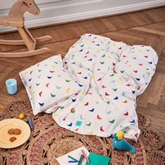 The playful bird print is inspired by Kay Bojesen's well-known design universe, where imagination and joy are central. The small songbirds create a safe and familiar atmosphere, making it extra nice for the child to snuggle up.