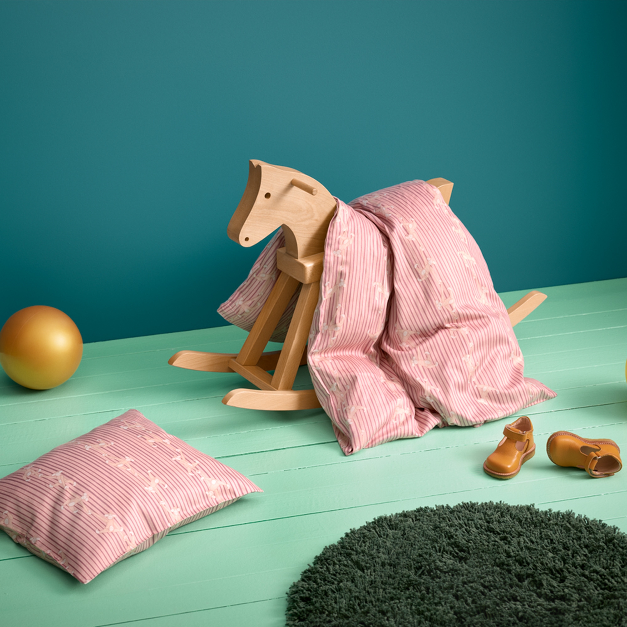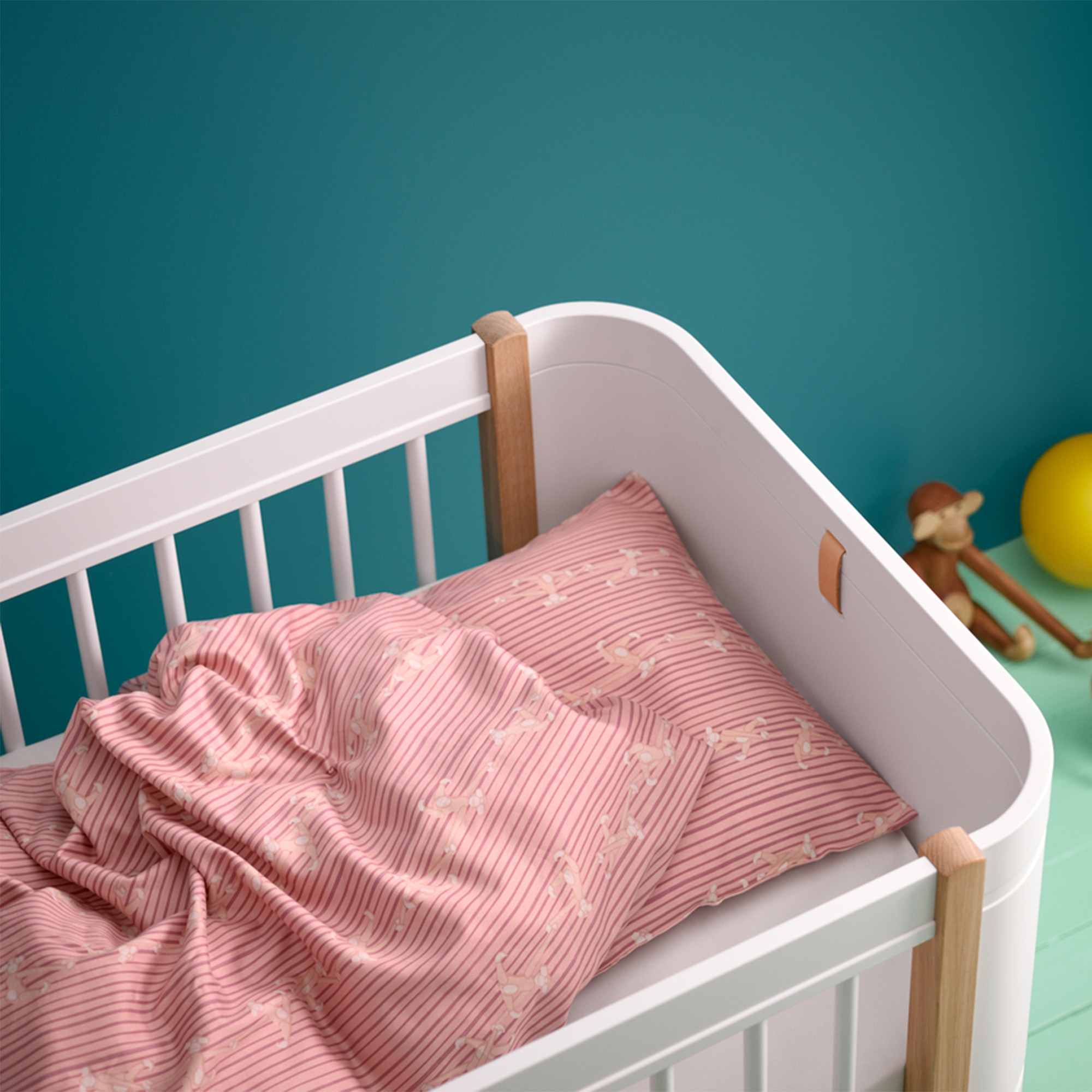 Home » Bedding » Children's bedding » Baby bedding 70x100 cm Kay Bojesen bedding - 100% organic cotton satin - Baby bedding 70x100 cm - Monkey Pink Kay Bojesen Great price:54,49EUR Few in stock Quantity Add to basket See more from: Kay Bojesen Item number: 39392-7 Read our bedding guide See our large selection of sheets See our large selection of duvets 70x100 Do you have questions about the product? Breathable material that ensures a comfortable night's sleepSoft quality that's gentle on baby's skinPractical zipper closure on both duvet cover and pillowcase Duvet cover: 70x100 cm - baby bedding set Pillowcase: 40x45 cm Material: 100% organic cotton satin Color: Pink Design: Monkey Brand: Rosendahl - Kay Bojesen Closure: Duvet cover and pillowcase are closed with a zipper Wash: 60°C Tumble dry: Yes Ironing: Yes Certification: STANDARD 100 by OEKO-TEX®. Your guarantee that the product is free from harmful chemicals. Certification: GOTS certified (GOTS Organic Certified by CU1026087). Your guarantee of organic textile production with a focus on environment, responsibility and freedom from harmful chemicals throughout the production process. Kay Bojesen Monkey baby bedding - organic bedding set in pink Make bedtime something really special with this lovely baby bedding from Kay Bojesen in size 70x100 cm. The beautiful set is decorated with the iconic monkey, which with its playful and charming expression creates joy and security for the little ones. The baby bedding is made from 100% organic cotton satin, which provides an extra soft, smooth and pleasant surface against the child's delicate skin. The luxurious satin weave ensures high comfort and makes it easy for the child to relax and fall into a good sleep. With both GOTS certification and STANDARD 100 by OEKO-TEX® you are ensured a bedding set free from harmful chemicals and produced with consideration for the environment and health. This makes it ideal for babies, where safety and quality are in focus. The pretty pink design with the well-known Kay Bojesen monkey makes the bedding both decorative and cozy in the children's room and is also a great gift idea for christenings, birthdays or other special occasions. The breathable cotton satin helps regulate temperature and ensures a comfortable night's sleep all year round. At the same time, the material is durable and easy to maintain, so it stays soft and lovely wash after wash. See all baby bedding here Kay Bojesen children's bedding Kay Bojesen is known for its iconic and playful design, which through generations has brought joy to both children and adults. With children's bedding inspired by the classic figures, the same warmth, imagination and personality are brought into the children's room. Kay Bojesen children's bedding combines Danish design tradition with high-quality comfort. The well-known motifs create a safe and cozy atmosphere where children can dream away in a world full of adventure and familiar characters. The materials are carefully selected with focus on softness, breathability and durability, so your child gets a pleasant night's sleep. See the full range from Kay Bojesen here Return to Baby bedding 70x100 cm