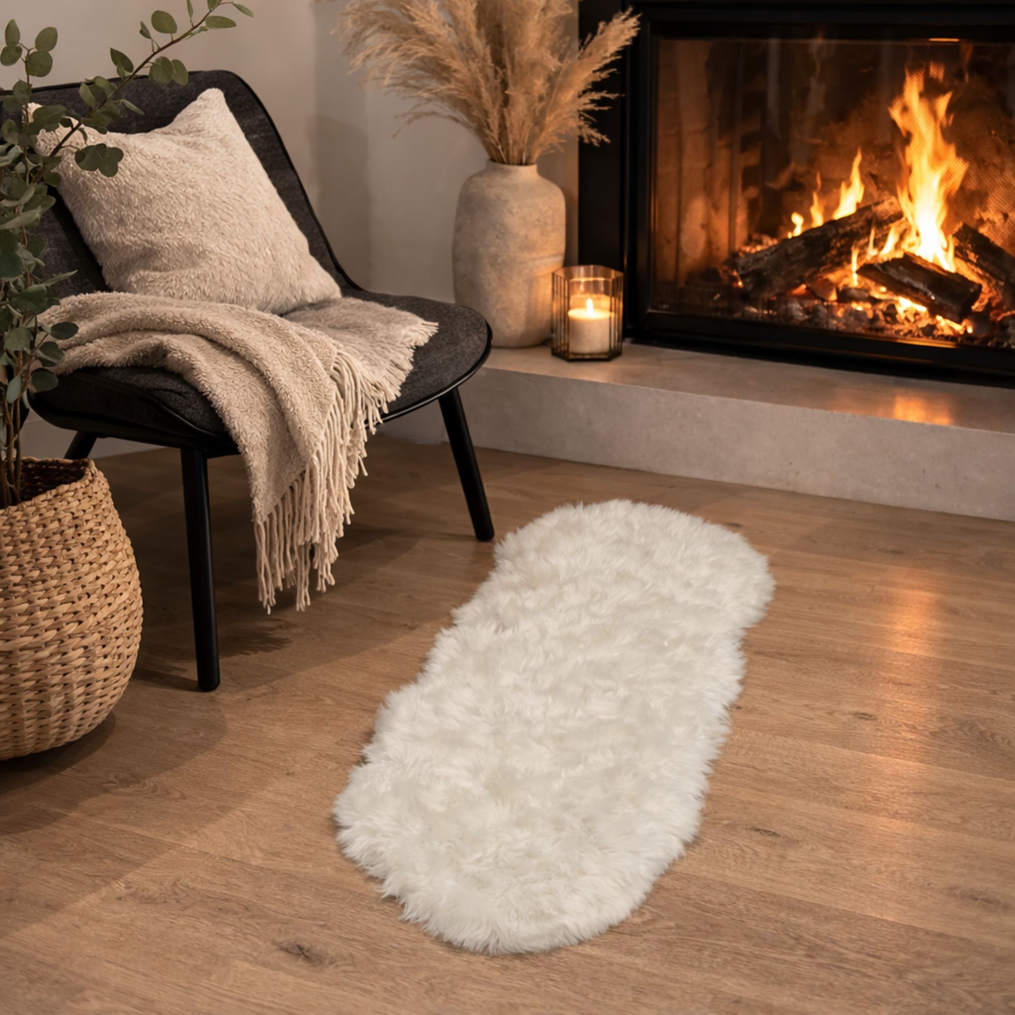 Home » Decorations Lambskin - 60x180 cm - White - Imitation lambskin for the home Save50% HOME-TEX 68,4934,49EURSave 34,- In stock Quantity Add to basket See more from: HOME-TEX Item number: PR751 Do you have questions about the product? Imitation lambskinColour: WhiteSize: 60x180 cm. Material front: Acrylic Material back: Polyester Size: 60x180 cm. Use: Indoor Colour: White Extra large and soft faux lambskin Our faux lambskin is a luxurious addition to your home that combines comfort and style. This faux lambskin, measuring 60x180 cm, is crafted to replicate authentic lambskin, providing a soft and cosy appearance. The colour adds an elegant touch to any interior design. Lambskin can enhance various rooms in your home, from the living room to the bedroom, creating a warm and inviting atmosphere. Acrylic Acrylic is a synthetic material renowned for mimicking natural fibres like wool and lambskin. It's soft and warm, making it an ideal option for our faux lambskin. Additionally, acrylic is low maintenance and retains its neat appearance over time, ensuring your lambskin remains attractive for years. Polyester backing The back of our imitation lambskin is crafted from polyester, a robust and durable material. This ensures the rug withstands everyday use without losing its form or colour. Polyester is also easy to clean, making the care of your new faux skin effortless. Explore a range of similar products in the Textiles category. Return to Decorations Customers also bought Lambskin - 60x90 cm - White - Imitation lambskin for chair In stock 34,4913,99EUR Add to basket Bamboo bedding 140x200 cm - 100% bamboo - Purple satin-woven In stock 108,9947,99EUR Add to basket Children's bedding 140x200 cm - Reversible bedding set with race cars - Design of red Formula 1 car - 100% soft cotton bed linen In stock 47,9934,49EUR Add to basket Lambskin - 60x95 cm - White - Imitation lambskin for your home Few in stock 54,4920,49EUR Add to basket Fleece blanket - Light Brown - 150x200 cm - Soft and luxurious sofa throw - Borg Living In stock 34,4920,49EUR Add to basket Fleece blanket - waffle texture - 150x200 cm - Soft olive green sofa throw - Nordstrand Home Few in stock 40,9927,49EUR Add to basket Latex mattress topper - 180x200 cm - 5 cm high - Latex & natural latex - Zen Sleep mattress topper for double bed In stock 707,49272,49EUR Add to basket Ergonomic pillow - Adjustable memory foam pillow - Zen Sleep Tora - Neck cushion In stock 122,4947,99EUR Add to basket Mattress protector - 180x200 cm - Hypoallergenic 7D microfibre - Zen Sleep mattress protector In stock 44,9924,49EUR Add to basket Christmas baubles - 24 pcs Silver - 4 cm in diameter - Beautiful Christmas tree decoration In stock 13,995,49EUR Add to basket