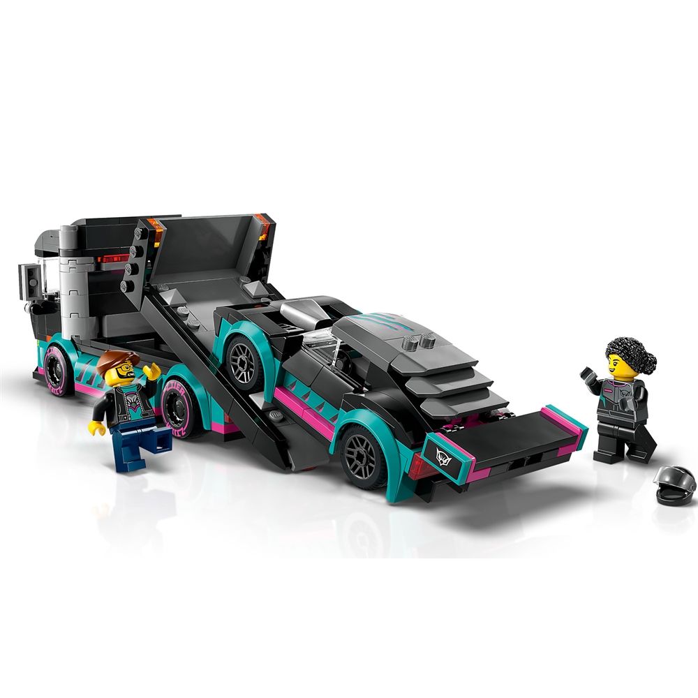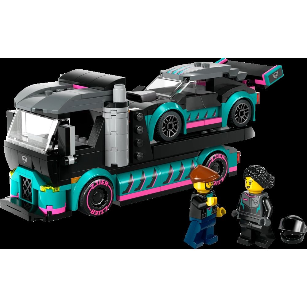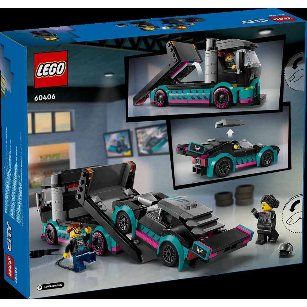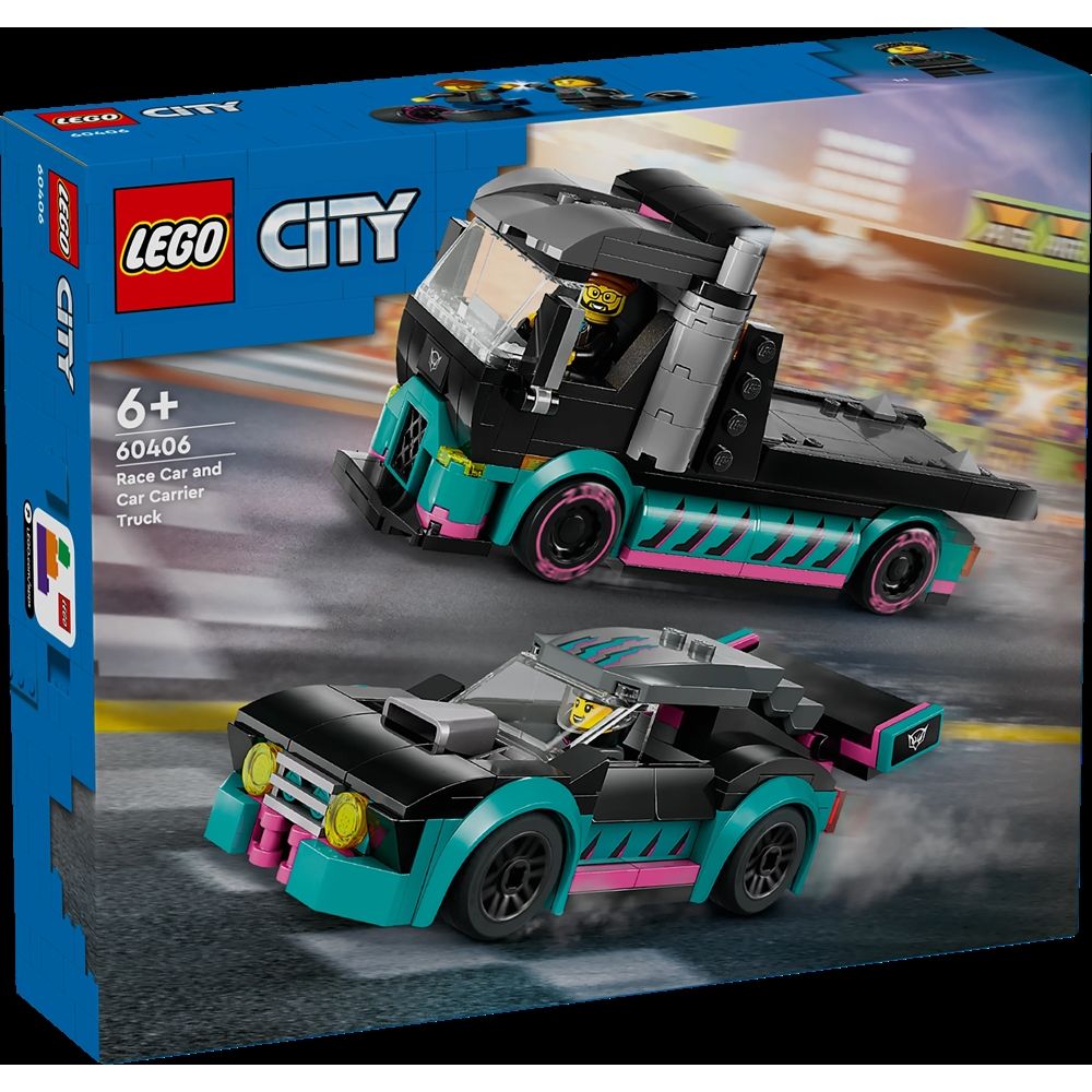 Home » All LEGO products LEGO City - Race Car and Car Transporter - 60406 - 328 pieces LEGO City Great price:31,49EUR Few in stock Quantity Add to basket See more from: LEGO City Item number: LEG60406 Do you have questions about the product? Step on the gas for excitement with the LEGO® City playset Race Car and Car Transporter, a perfect gift that boosts children's love of toy cars and trucks. The set includes a race truck with a functional loading ramp and a cool race car with lowered suspension and stylish fenders. The set also includes minifigures of a race car driver and a truck driver for fun role-play with stories and adventures. The playset contains an easy, printed building guide and step-by-step 3D instructions in the LEGO Builder app, where children can zoom in, rotate and view models from all angles as they build. The model transporter is over 7 cm high, 17 cm long and 6 cm wide. Return to All LEGO products