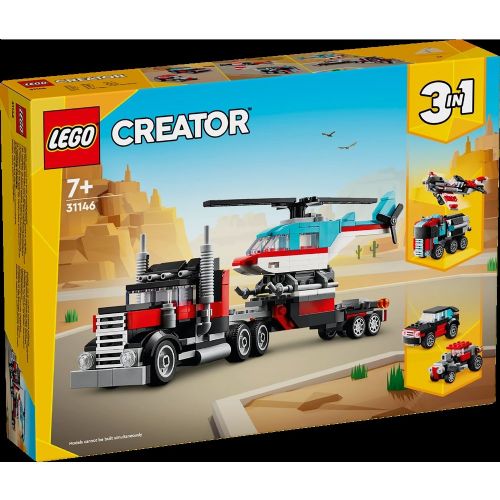 Home » Toy » LEGO » LEGO Creator LEGO Creator - Block Wagon with Helicopter - 3-in-1 set - 31146 - 270 pieces LEGO Creator Great price:24,49EUR Few in stock Quantity Add to basket See more from: LEGO Creator Item number: LEG31146 Do you have questions about the product? Fast-paced adventures await boys and girls with the LEGO® Creator playset Block Wagon with Helicopter. They can use the 3-in-1 set's 270 pieces to build a cool toy. Children can build 3 different toy sets with 2 separate vehicles with this LEGO Creator 3-in-1 toy. They can build a block wagon with a helicopter, which has movable rotor blades, convert it into a propeller plane and a tanker wagon with movable wheels, assemble a hotrod and an SUV car set for racing, or use the bricks to create their own vehicles. Return to LEGO Creator