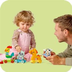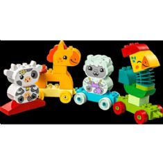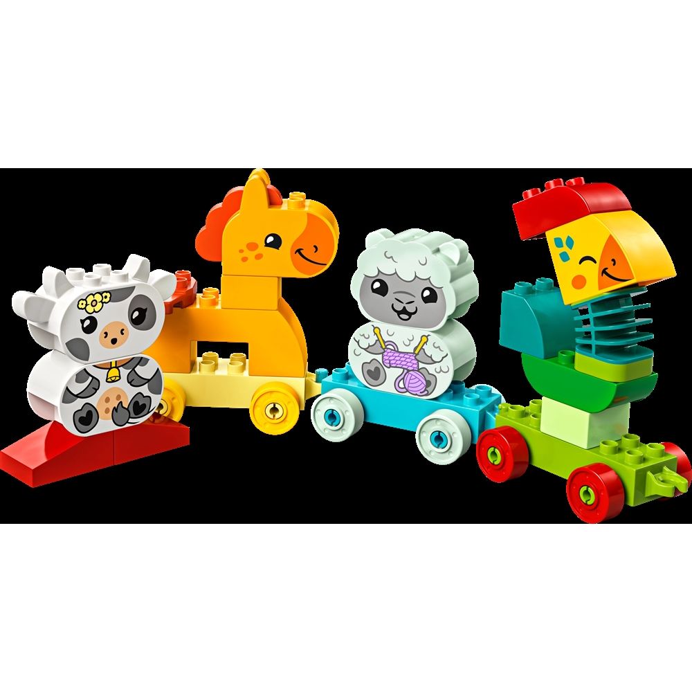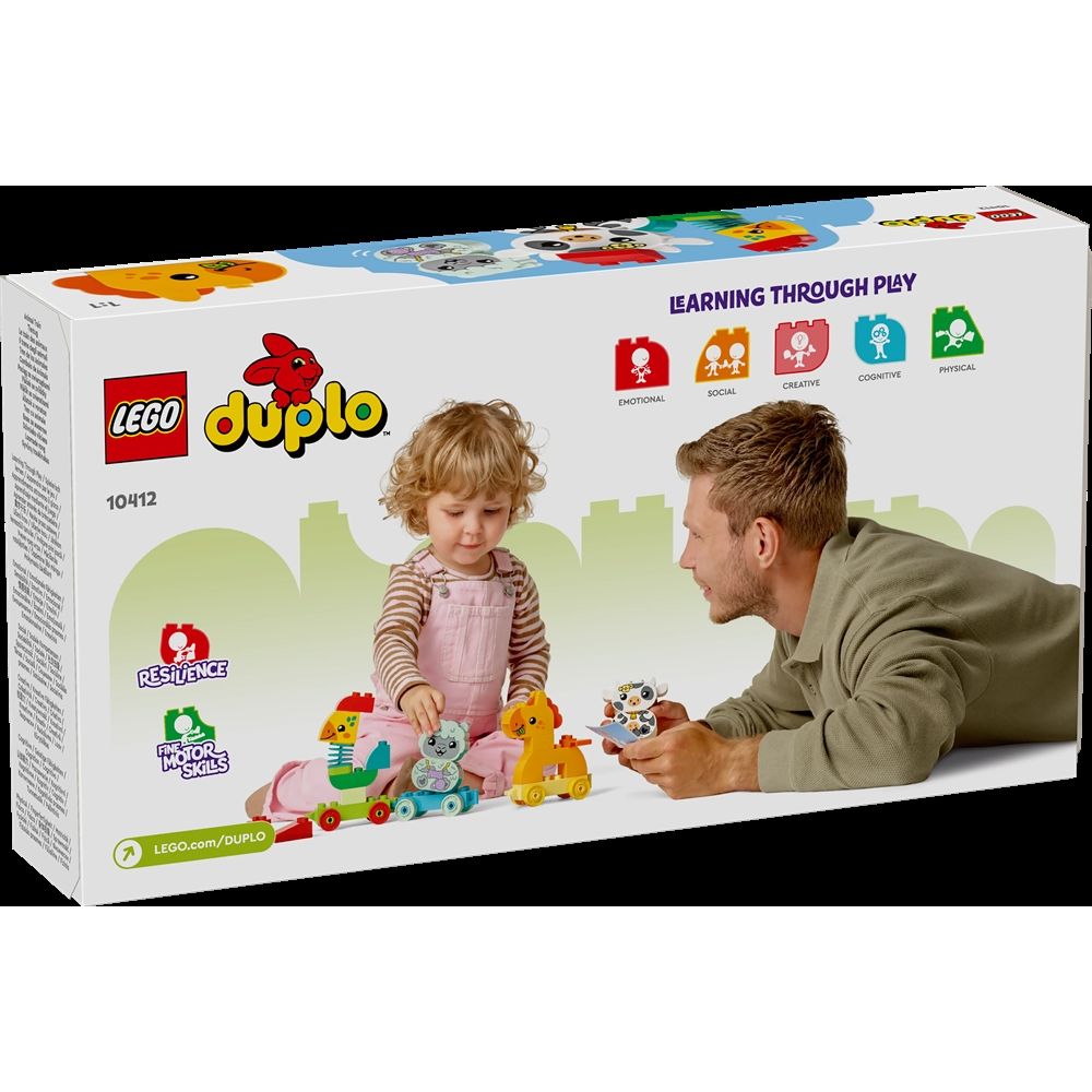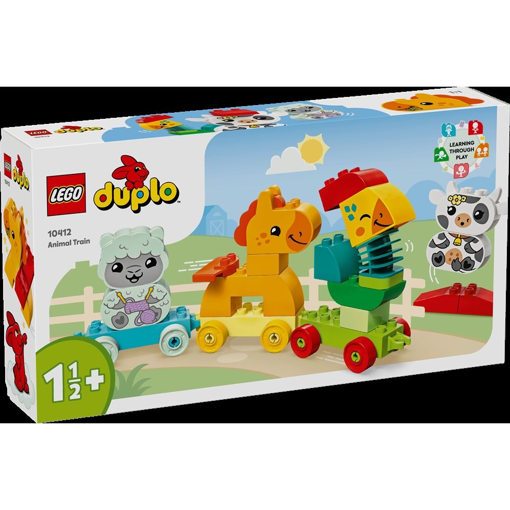 Home » All LEGO products LEGO DUPLO - My First Animal Train - 10412 - 19 pieces Duplo Great price:24,49EUR Few in stock Quantity Add to basket See more from: Duplo Item number: LEG10412 Do you have questions about the product? Do you know a child who loves creative play and nature-themed toys? Introduce toddlers from 1½ years to color-matching play with the LEGO® DUPLO® set My First Animal Train (10412). This educational toy for the youngest includes 4 cute animals that can be built - a rooster, a horse, a lamb and a cow - that take young children on a journey of fun role-play. Young children learn problem-solving as they follow the cards to build the animals and then match them with the colored train cars. The vehicle toy also includes 2 extra bricks, so children can express their creativity by building and rebuilding the animals into toy figures of their own invention. Play-inspiring details, such as the rooster's flexible neck and the toy train's connectable cars, help develop children's motor skills. When the set is fully assembled, the toy animal train is over 17 cm high, 43 cm long and 6 cm wide. Return to All LEGO products