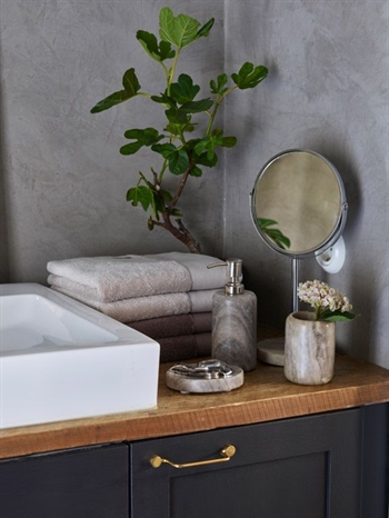 Home » Decorations Save50% Halvor Bakke Make-up Mirror - Stone by Halvor Bakke - Sanders - Height 35 cm Make-up mirrorZoom feature35x17 cm 54,4927,49EURSave 27,- Quantity Add to basket Few in stock Delivery: 1-2 days Item number: 108357 Specifications Type: Make-up mirror Size: 35x17 cm Colour: Chrome Material: Chrome and stone with a marble effect Classic cosmetic mirror - Elegance for your bathroom This Halvor Bakke cosmetic mirror is crafted to bring an essence of elegance to your bathroom. With its classic round design and a height of 35 cm, it is both practical and stylish. The mirror is reversible, enabling you to view a magnified reflection of your face on one side. Ideal for makeup application and skincare routines. Reversible mirror The clever aspect of this cosmetic mirror is its reversible design. This allows you to alternate between a regular mirror and a magnified option. The magnified side is perfect for detailed makeup application and precise skincare. This feature makes the mirror both practical and versatile. Do have a look at the Bathroom accessories section as well. Browse our selection of towel sets Explore our selection of bathroom storage options Do you have questions about the product? Read moreHide FAQ - Frequently Asked QuestionsWhat are the delivery times and shipping costs?At HOME-TEX.com we pack all orders daily and can generally promise that your items will be shipped quickly. HOME-TEX.com offers fast delivery once your order has been processed. For specific shipping costs in your region, please check the shipping information, as these can vary by country.What if I want to return my order?HOME-TEX.com offers an unlimited right of return, which means you can return your item as long as it is unused and in its original condition and packaging.How do I return an item?If you wish to return an item, you may use any shipping provider of your choice to send it back to the return address. Be sure to include your order confirmation in the return package so we can identify your order. You are free to choose any carrier that delivers within our customer service opening hours. Can I pay with PayPal?Yes — on HOME-TEX.com you can securely and conveniently pay for your order using PayPal at checkout. This allows you to pay using your PayPal account details without sharing your payment information directly with the shop.What should I do if my item is damaged?If you receive an item that is defective or damaged, please contact our customer service as soon as possible so we can assist you with a return or replacement. Return to Decorations