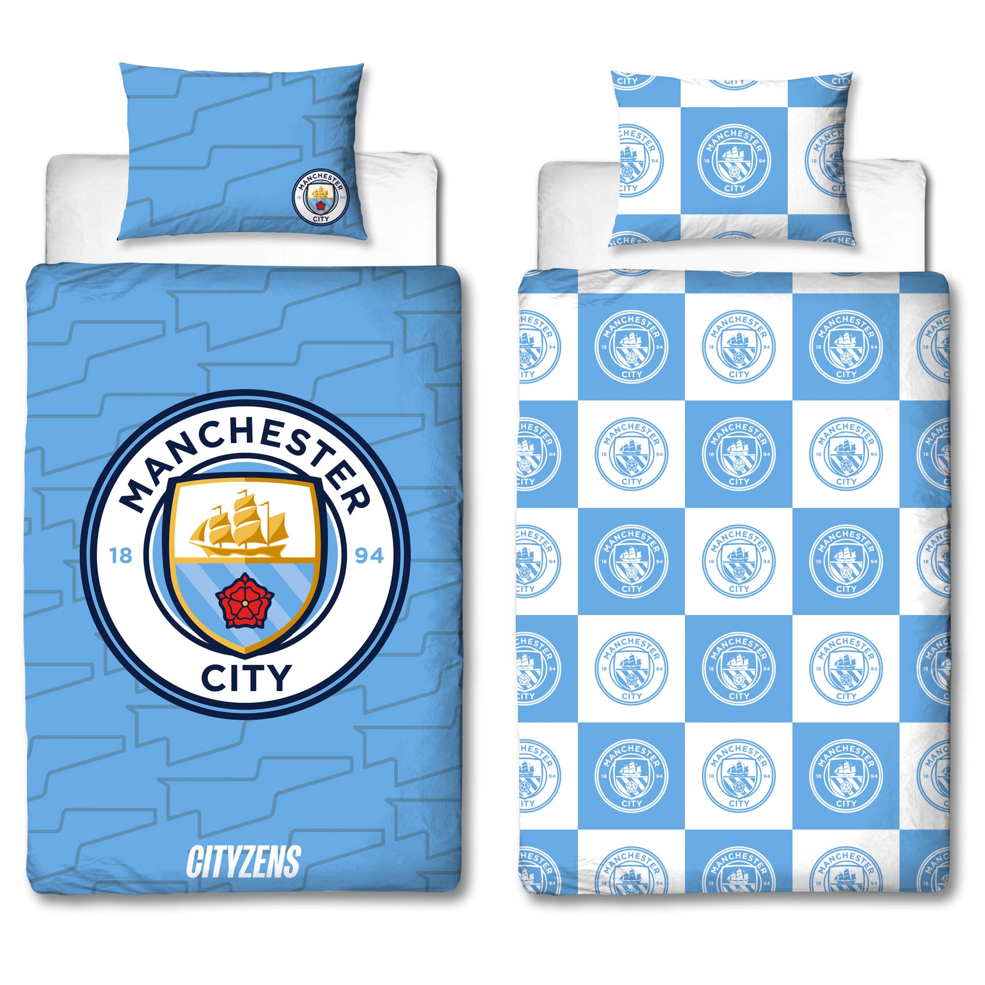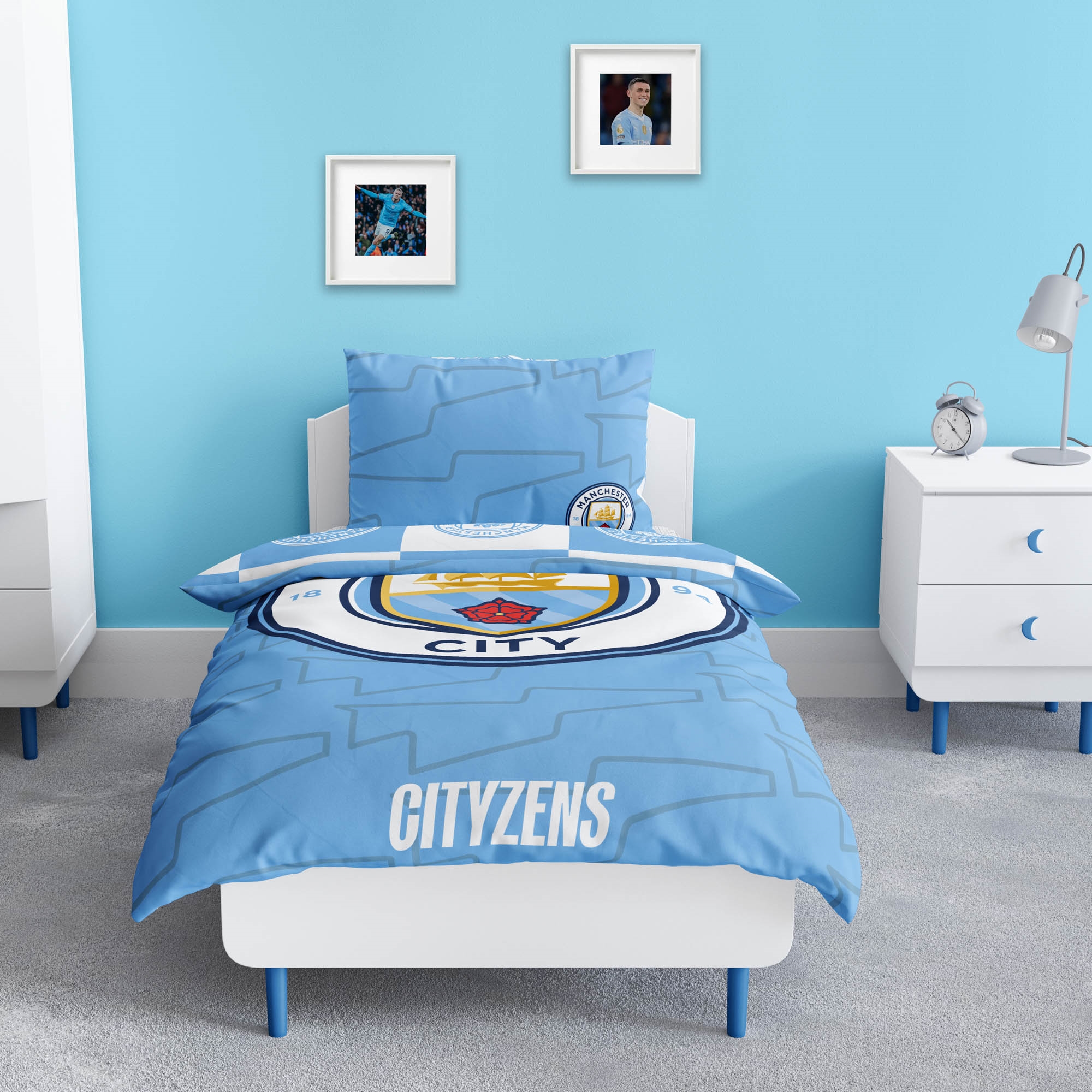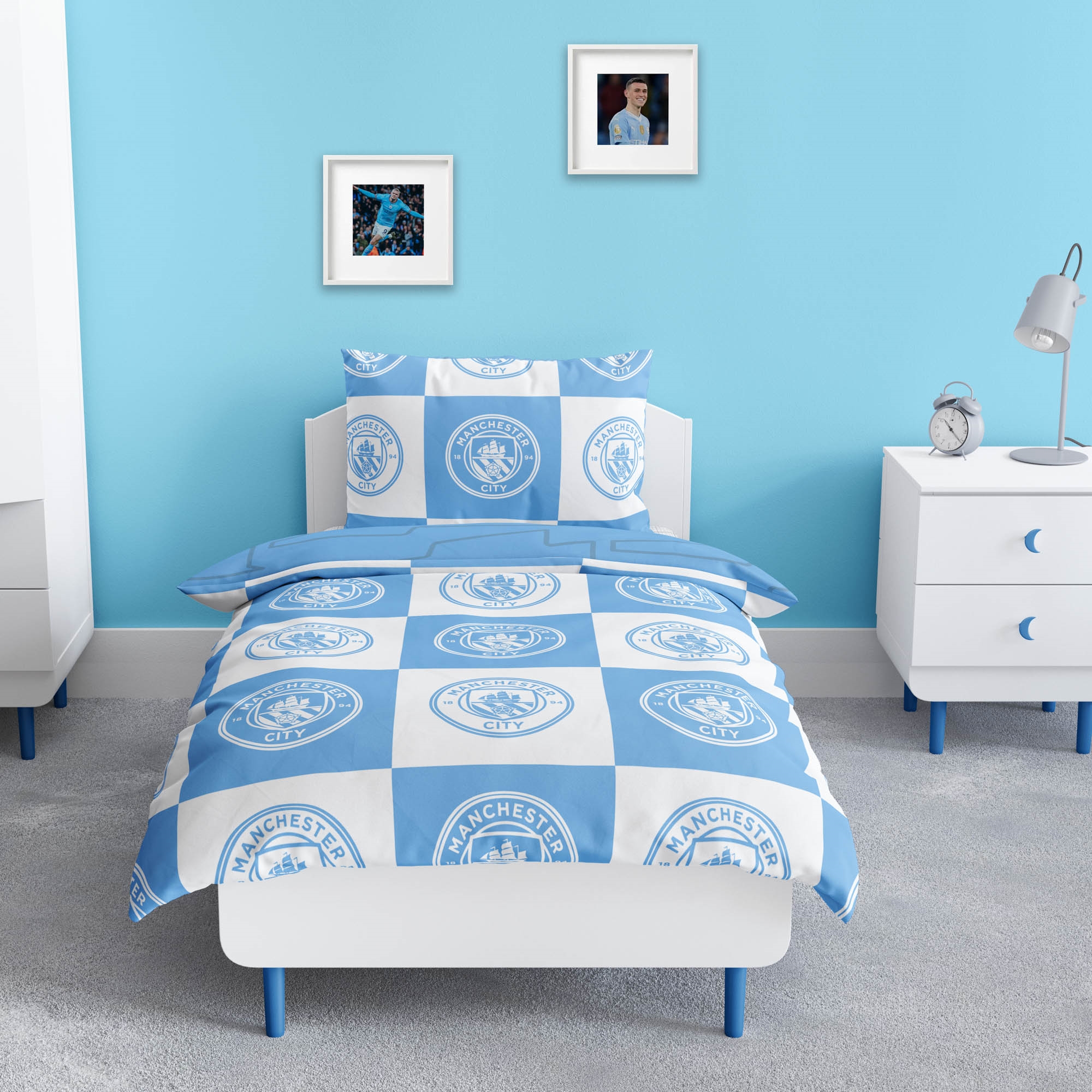 Home » Bedding » Single bedding » Single bedding 150x210 cm (Swedish size) Manchester City bedding - 150x210 cm - Blue reversible bedding set with logo - 100% cotton bed linen - Football bedding Save28% Licens 47,9934,49EURSave 14,- In stock Quantity Add to basket See more from: Licens Item number: 22278-3 Read our bedding guide See our large selection of fitted sheets See our large selection of duvets Do you have questions about the product? Perfect for the football fan100% soft cottonOEKO-TEX® certified Duvet cover: 150x210 cm - Swedish size Pillowcase: 50x60 cm Material: 100% soft cotton Color: Blue Motif: Manchester City logo Design: Reversible - Front with Manchester City logo, back with all-over print Closure: Duvet with buttons and pillowcase with overlap Wash: 60° Tumble dry: Yes Ironing safe: Yes Certification: STANDARD 100 by OEKO-TEX® (2018OK0249 AITEX). Your guarantee that the product is free from harmful chemicals. Soft bedding in 100% cotton, featuring the Manchester City logo design. Perfect for the little football fan who loves to play. Made with light and breathable cotton fibers, this bedding set provides a softness that allows the duvet to naturally drape around your child. The balance of natural comfort from the soft material and the cozy football design makes this set a sure favorite for your child. Show your support for your favorite football team with this Manchester City bedding. The bedding is reversible with a large logo on the front and an all-over print on the back. The bedding set is made from 100% pure cotton, ensuring high breathability, durability, and a soft, comfortable surface. The bedding is also OEKO-TEX certified, guaranteeing it is free from harmful substances, making it safe to use. See our large selection of accessories for the children's universe For the child, the bed is a safe place. All elements must together create beautiful and pleasant surroundings for the child to find peace in. At HOME-TEX.com you can find all accessories for the bed that help create the right sleeping environment for your child. Here you can find lovely and soft quality fitted sheets Return to Single bedding 150x210 cm (Swedish size) Customers also bought Paw Patrol Towel - 70x140 cm - One Team - 100% Cotton - Soft Bath Towel with Puppies In stock 27,4917,99EUR Add to basket Manchester City towel - 70x140 cm - 100% cotton - Soft bath towel with Manchester City logo In stock 27,4920,49EUR Add to basket Stretch fitted sheet 140x200 cm - White jersey sheet - IN Style fitted sheet In stock 31,4912,49EUR Add to basket Stretch fitted sheet 180x200 cm - Grey jersey stretch fitted sheet - IN Style - Fitted sheet for double bed In stock 36,9913,99EUR Add to basket