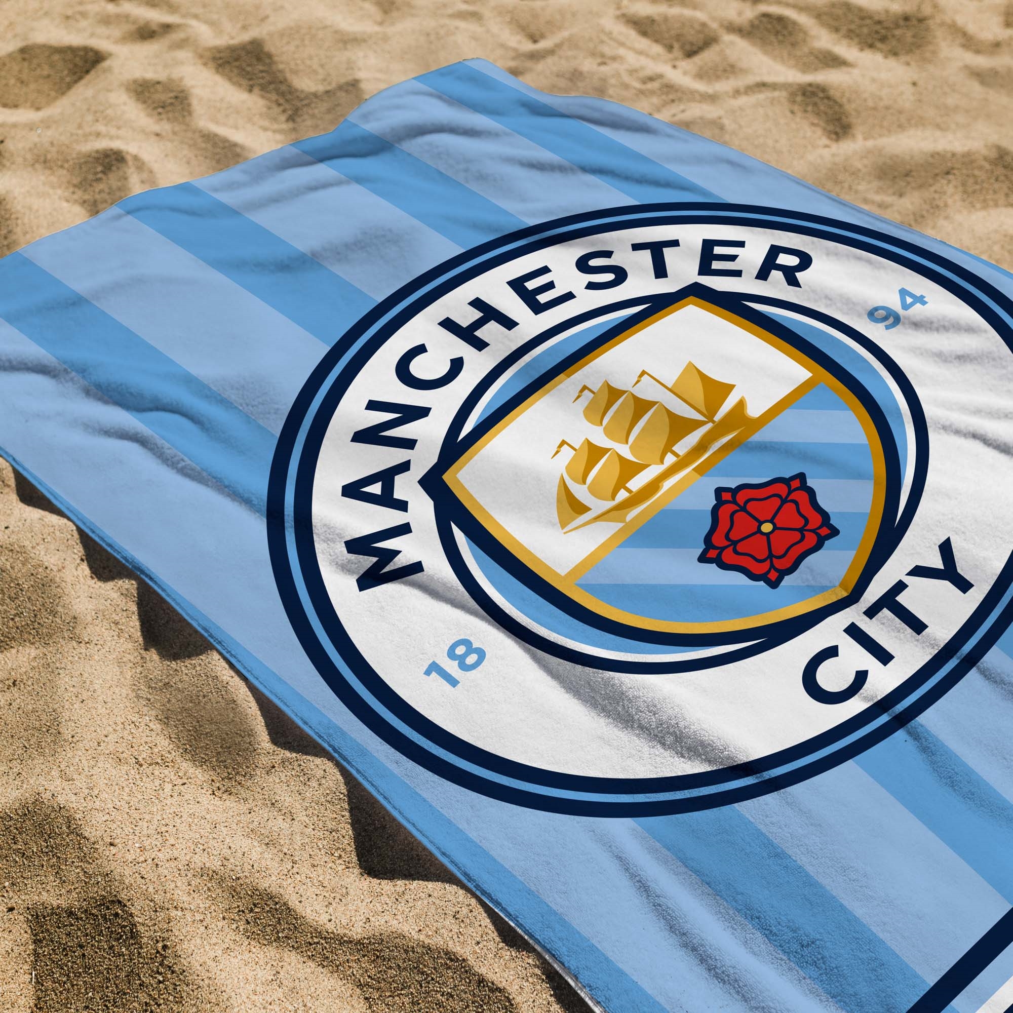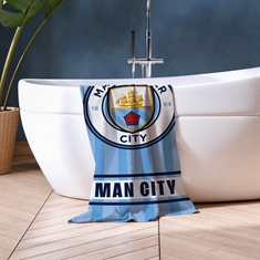 Home » Interior Design » Bathroom accessories » Towel sizes » Bath towels 70x140 cm Manchester City Towel - 70x140 cm - 100% Cotton - Soft Bath Towel with Manchester City Logo Save25% Licens 27,4920,49EURSave 7,- In stock Quantity Add to basket See more from: Licens Item number: 22283 Read our towel guide See our selection of towel packs See our selection of children's bath ponchos Do you have questions about the product? Good AbsorptionSoft & ComfortableOEKO-TEX® - Free from Chemicals Size: 70x140 cm Type: Bath Towel Design: Manchester City Hanging Loop: Yes, top Quality: 100% Soft Cotton Washing: 40° Tumble Dry: Yes Certification: STANDARD 100 by OEKO-TEX® (11-31077 Shirley). Your guarantee that the product is free from harmful chemicals. Soft bath towel in 100% cotton, featuring the Manchester City logo. The towel's football motif will surely bring a smile to the little football fan, making bath time more fun. The balance of natural comfort from the soft material and the cozy football design makes this towel a sure favorite for your child. We recommend soaking new towels in cold water before the first wash to optimize their absorbency. This Manchester City towel is an easy upgrade from the boring bath towel, making bath time more interesting and personal. The towel's football motif will surely excite the little football fan. The children's towel is made of 100% cotton, which means it is wonderfully soft and comfortable to use. Cotton is a naturally soft material that is gentle on the skin, and it is also known for its high absorbency. The bath towel is equipped with a loop, making it easy to hang up when it needs to dry. Find lovely bathrobes here The towel is OEKO-TEX certified, meaning it has been tested free from harmful chemicals. This is a sign of responsible production, which benefits not only the environment but also our body and skin, as it reduces the risk of allergic reactions. Find everything for the bathroom here Return to Bath towels 70x140 cm
