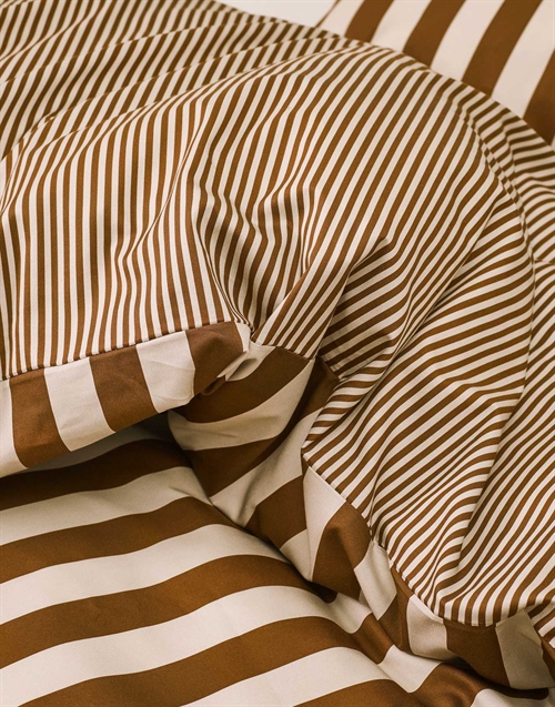 Marc O'Polo bedding - 100% Enzyme-washed cotton bed set - 140x200 cm - Classic Stripe Toffee Brown bed linen