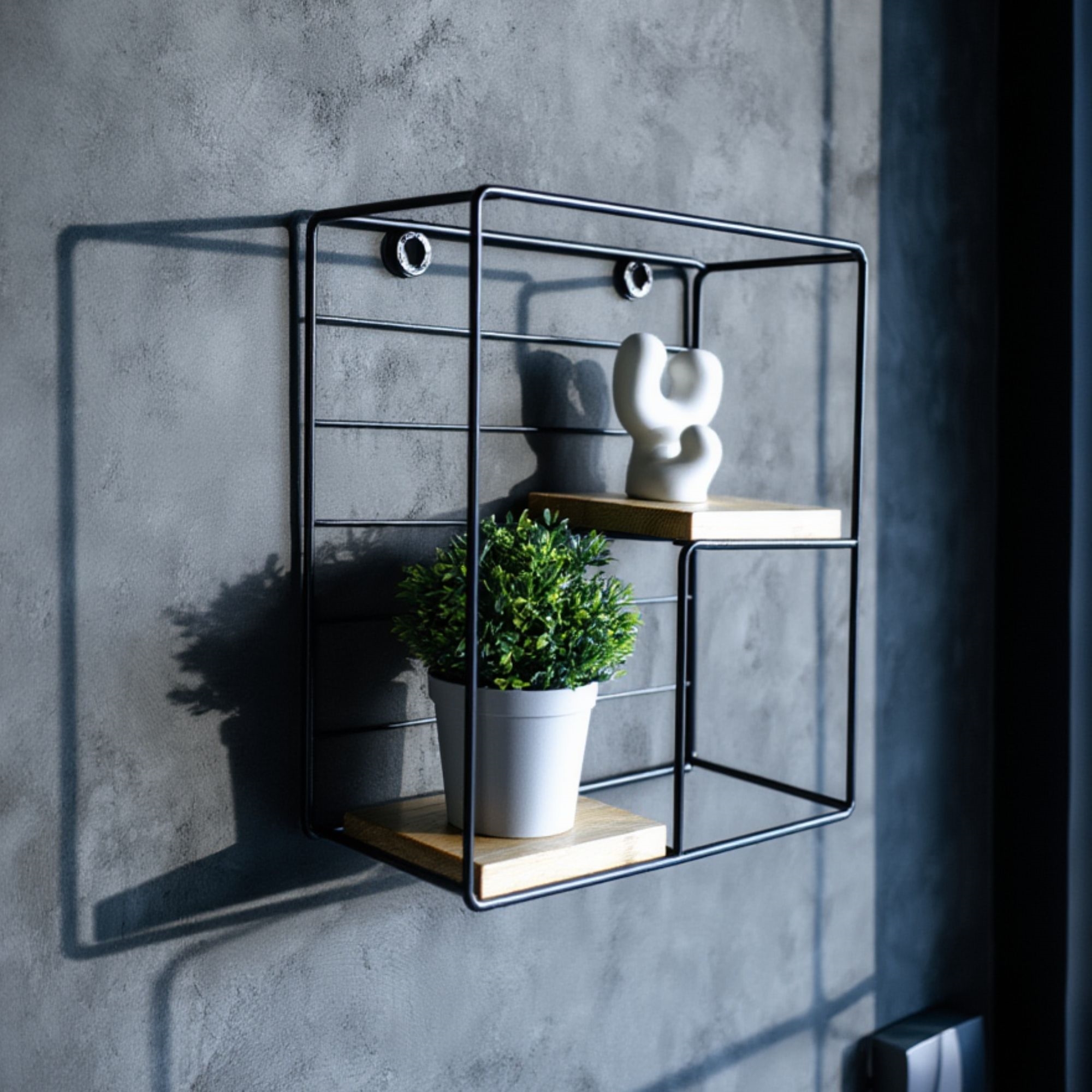 Home » Interior Design » For the table » The kitchen Metal shelf for the wall - 22x22x9cm - Square - Black metal shelf Save49% HOME-TEX 27,4913,99EURSave 14,- In stock Quantity Add to basket See more from: HOME-TEX Item number: PR612 Do you have questions about the product? 2 small wooden basesSquare designPractical storage and decoration Material: Metal and wood Dimensions:22x22x9cm Colour:Black Unique, stylish and functionalThis black metal shelf with wooden shelves is not only an aesthetically pleasing addition to your interior design, but also a practical feature. Its suitable size (22x22x9cm) makes it ideal for any area, and it is strong enough to support your favourite items or decorations. It seamlessly blends modern design with natural warmth, providing a warm contrast to the black metal frame.Metal frameThe metal frame of this shelf provides a robust and durable structure, ensuring it can securely support the weight of your items. The black colour adds a modern and stylish touch to any room.For similar products, visit our category Interior design. Return to The kitchen Customers also bought Makeup mirror - Turiform Urban mirror - Classic white - Height 35cm In stock 74,9940,99EUR Add to basket Facial brush - Accessories for facial cleansing - Skincare - Incl. 2 brush heads In stock 10,996,99EUR Add to basket Bathing sandals - Size 40/41 - Unisex - Soft and comfortable slippers In stock 20,495,49EUR Add to basket Men's Socks 4 pairs size 40-42 with The Simpsons In stock 13,998,49EUR Add to basket Men's Socks 4 pairs size 40-42 with Star Wars In stock 13,998,49EUR Add to basket Men's Socks 4 pairs in size 43-45 with The Simpsons In stock 13,998,49EUR Add to basket Wall sticker - FC Barcelona - 3 pieces - 3D effect In stock 17,996,99EUR Add to basket Wall Clock - White and Elegant Clock from Turiform - Ø18 cm. In stock 34,4920,49EUR Add to basket Bathing sandals - Size 38/39 - Unisex - Soft and comfortable slippers In stock 20,495,49EUR Add to basket Bedding 140x200 cm - Microfiber - Beige with leaf print In stock 34,4913,99EUR Add to basket