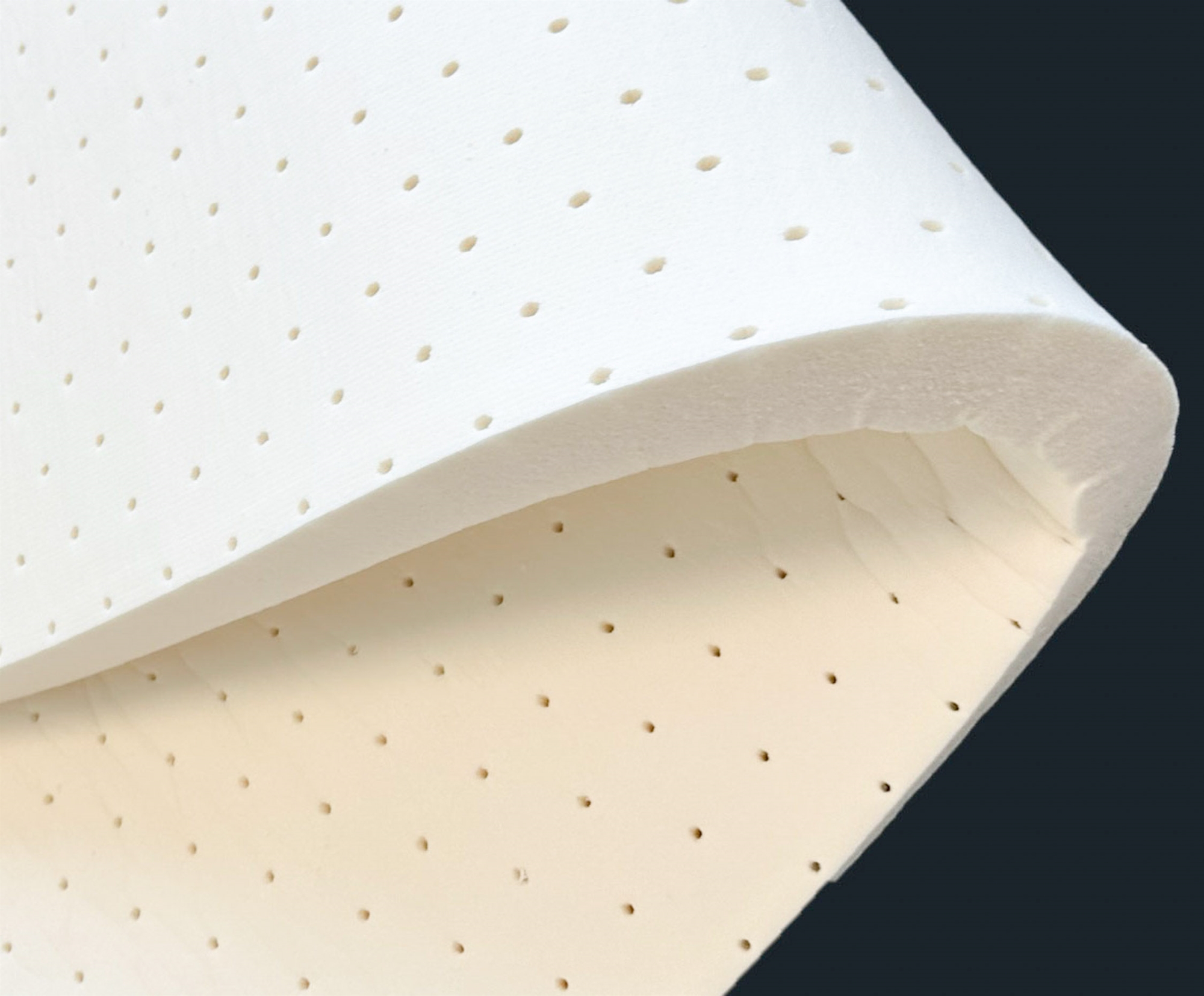 The topper fitted sheet is molded using the Talalay method. This is an exclusive method which, combined with 100% natural latex, is used to create and mold latex mattresses of the highest quality and with a unique comfort. With this method, you get a latex topper fitted sheet with the perfect combination of air and natural rubber, creating this unique comfort.