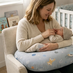 The nursing pillow measures 73x53x10 cm and provides ample space and stable support around the body. It is filled with soft polyester fiber filling, which shapes comfortably and helps relieve arms, shoulders, neck and lower back. This creates a more relaxed and correct feeding position - both for breast and bottle.