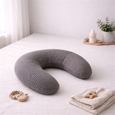 The shape of the nursing pillow is developed to provide optimal support for both mother and child. The flexible fiber filling follows the body's contours and helps maintain an ergonomic breastfeeding position where shoulders, neck, and back are relieved instead of strained. This means you can breastfeed for longer periods without discomfort or tension in the body. The nursing pillow creates a stable and natural position for the baby, so the child can lie safely, calmly, and close to the mother, which provides more closeness and better breastfeeding.