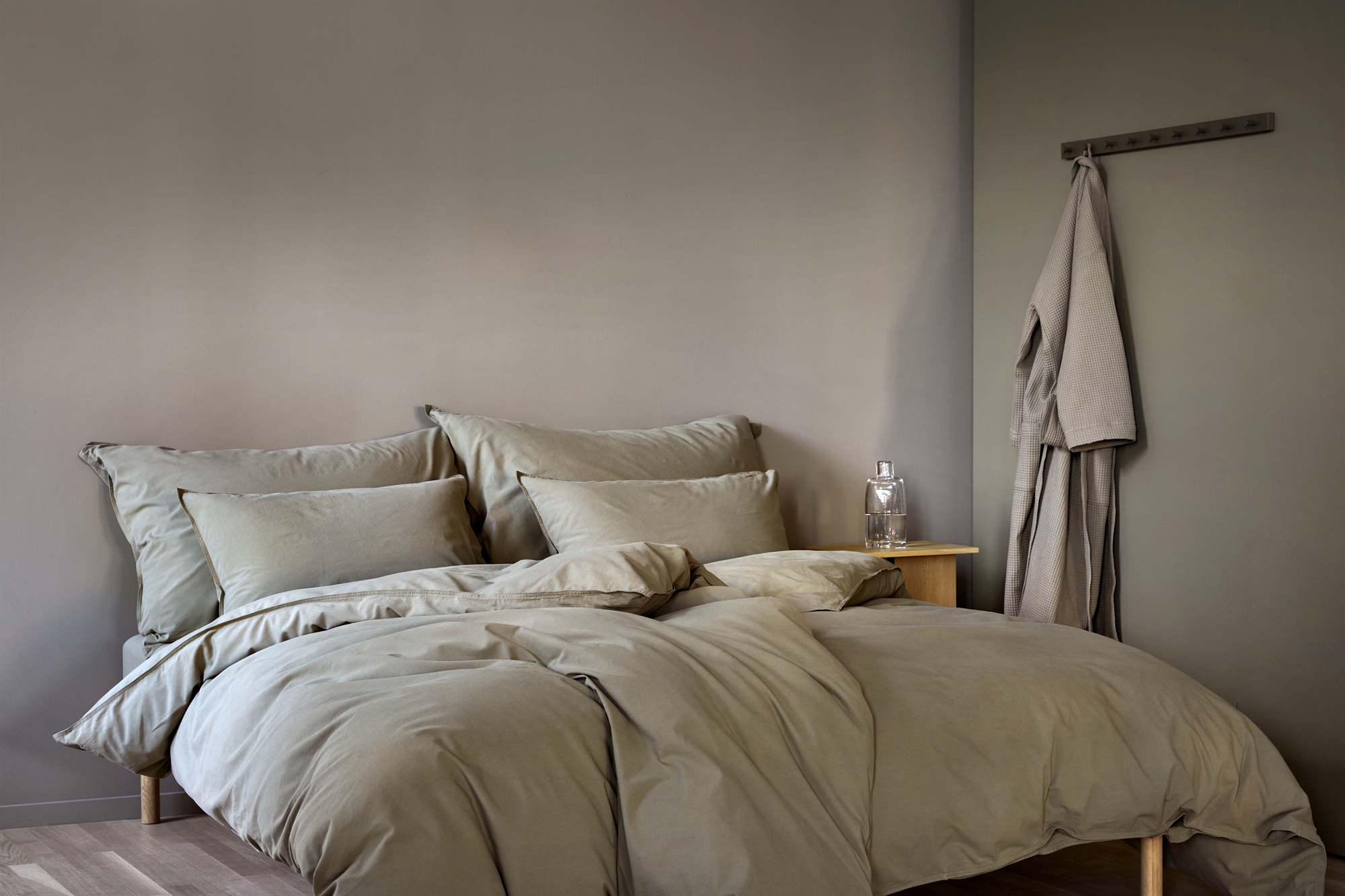 Home » Bedding » Single bedding » Single bedding 140x200 cm Organic bed linen 140x200 cm - 100% stonewashed cotton - Frøya olive green - Høie of Scandinavia bed linen Save28% Høie Of Scandinavia 95,4968,49EURSave 27,- In stock Quantity Add to basket See more from: Høie Of Scandinavia Item number: 8243-1 Read our bedding guide See our wide selection of sheets Explore our extensive selection of 140x200 duvets Do you have questions about the product? Stonewashed cotton - For a raw lookExtra fine weaveSwan label Duvet cover: 140x200 cm Pillowcase: 1 pc. 60x63 cm Material: 100% stonewashed, organic cotton Weave: Extra fine 300TC (Thread count = number of threads per square inch) Color: Olive green Design: Frøya olive green Brand: Høie of Scandinavia Closure: Duvet cover with buttons, pillowcase with overlap Wash: 60°C Tumble dry: Yes Ironing: Yes Certification: Swan label (2112 0008) Certification: MADE IN GREEN by OEKO-TEX® (M1VLV2KU7). Your guarantee that the product is free from harmful chemicals. Lovely bed linen in 100% organic cotton, which is both gentle on the environment and soft against the skin. The bedding set is yarn-dyed which ensures a durable color that remains nice wash after wash. The stonewashed look gives a soft and lightly crinkled surface. It's good to know that the Frøya series uses 30% less water than traditional dyeing methods. The Frøya series is produced from 100% organic cotton, which is yarn-dyed and stonewashed, softening the fibers and giving the bedding the proper stonewashed finish and a natural crinkled look. The fact that the set is yarn-dyed means the cotton thread is colored before weaving. The chosen cotton is known for its purity and high durability, and the extra fine cotton threads feel pleasant against the skin. If you like a raw bed linen you can love year after year, the Frøya series is the one to let shine in the bedroom. The stonewashing also gives the bedding a more relaxed look that crinkles in just the right way. It's good to know that the Frøya series uses 30% less water than traditional dyeing methods - and that it is Swan-labeled for a better tomorrow. The bedding set is OEKO-TEX certified, which means it has been tested free from harmful chemicals. This is a sign of responsible production that not only benefits the environment but also our body and skin, as it reduces the risk of allergic reactions. See the large range from Høie here Høie is a Scandinavian brand that stands for tradition combined with innovation. The company has existed since 1850 and over the years has helped shape and develop Scandinavian textiles and designs. Bed linen from Høie is everyday luxury that everyone deserves. Find quality sheets here Return to Single bedding 140x200 cm