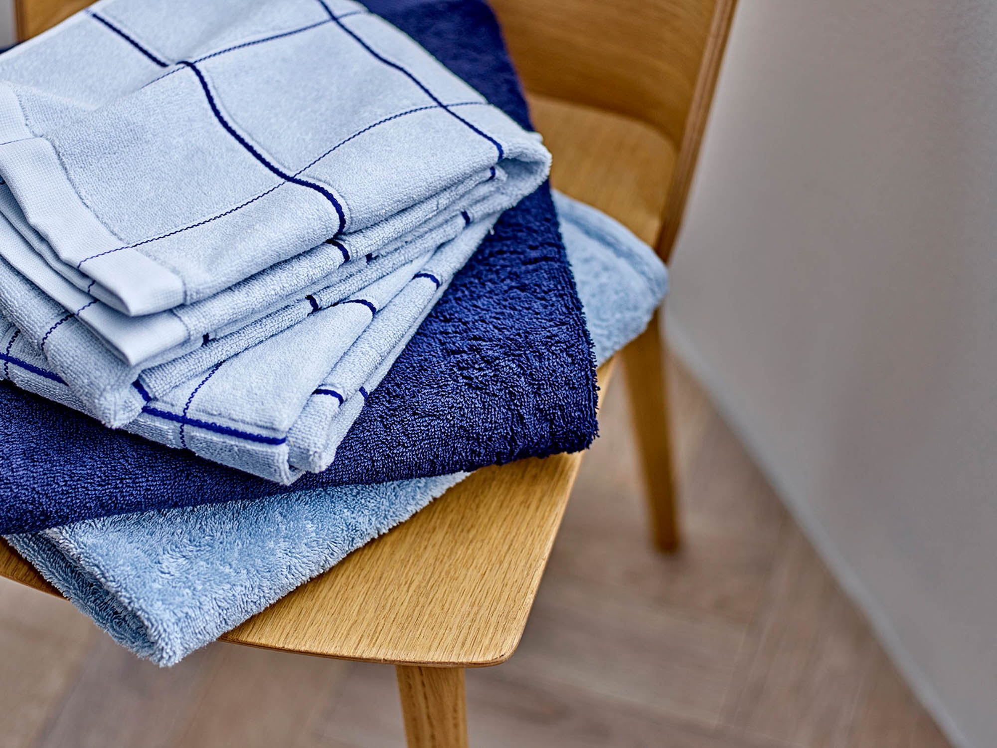 We always recommend that brand new towels are soaked in cold water before the first wash - this way you improve the towels' absorbency. In addition, the towels can advantageously be tumble dried to preserve their fullness and softness.