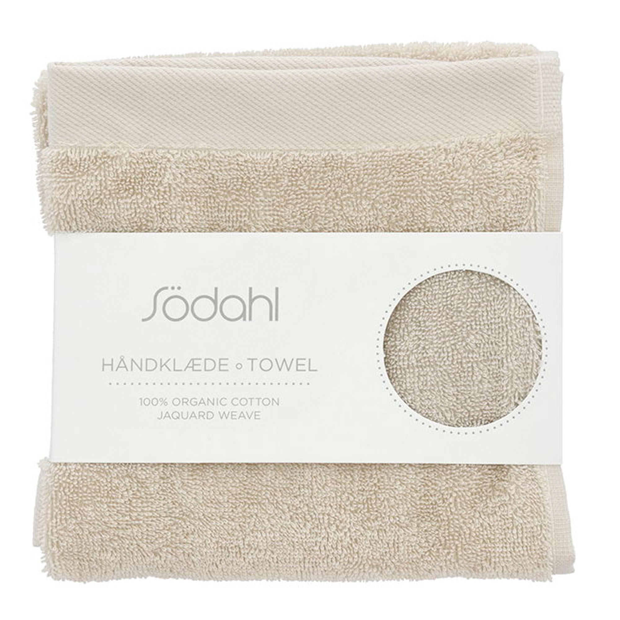 The soft and full quality at 500 g/m² gives a pleasant feel against the skin, while the high absorbency ensures that hands dry quickly. The elegant beige colour and the discreet woven border with Södahl's logo add a clean and exclusive expression to the bathroom.