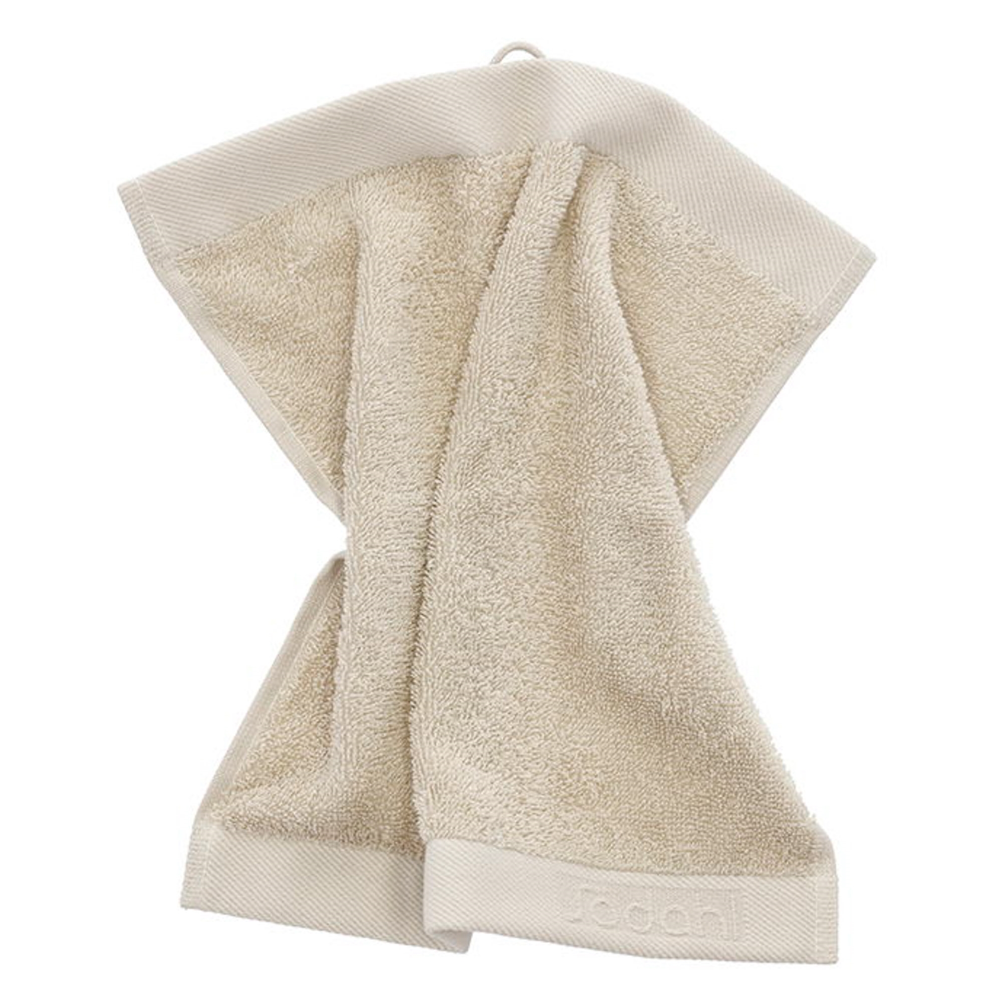 The soft and full quality at 500 g/m² gives a pleasant feel against the skin, while the high absorbency ensures quick drying of the hands. The elegant beige colour and the discreet woven border with Södahl's logo add a clean and exclusive look to the bathroom.