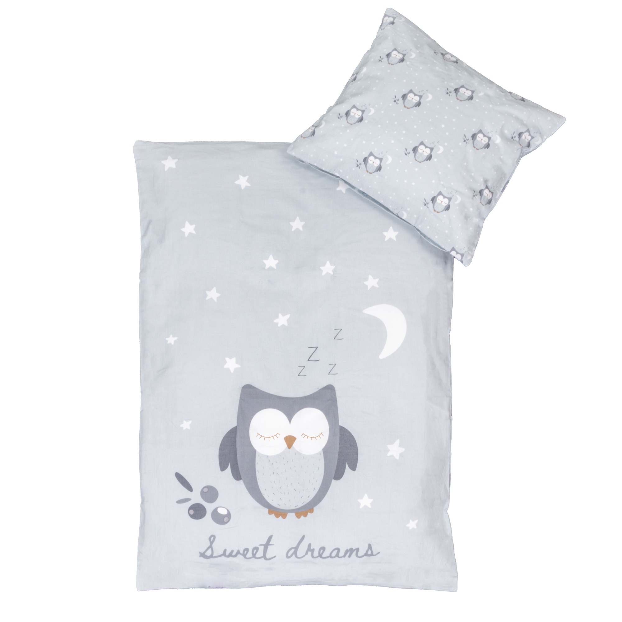 Home » Bedding » Children's bedding » Baby bedding 70x100 cm Owl Bedding 70x100 cm - Blue Baby Bedding Set with Sleeping Owl - Reversible Design - 100% Cotton Bed Linen - Nordstrand Home Save50% Nordstrand Home 40,9920,49EURSave 21,- In stock Quantity Add to basket See more from: Nordstrand Home Item number: 84-7 Read our bedding guide See our large selection of fitted sheets See our large selection of duvets 70x100 Do you have questions about the product? 100% soft cottonBreathable & absorbentOEKO-TEX® certified Duvet cover: 70x100 cm - baby bedding set Pillowcase: 40x45 cm Material: 100% soft cotton Color: Light blue Motif: Sleeping owl Design: Reversible - Front side features a sleeping owl and the back side has an all-over print of owls Closure: Duvet cover and pillowcase close with zipper Wash: 60°C Tumble dry: Yes Ironing safe: Yes Certification: STANDARD 100 by OEKO-TEX® (2022OK2176 AITEX). Your guarantee that the product is free from harmful chemicals. Soft baby bedding in 100% cotton, with a sweet design of a sleeping owl in a calm color. Made with light and breathable cotton fibers, this bedding set provides a softness that allows the duvet to naturally fall around your child. The balance of natural comfort from the soft material and the cozy owl design makes this set a sure favorite for your child. The bedding is designed with a lovely motif of a sleeping owl and the text Sweet Dreams on the front, and on the back there is an all-over print of small owl motifs. The baby bedding fits a standard baby duvet size and can be used in the bed, baby nest, stroller, or wherever the duvet is taken. The baby duvet is often wrapped snugly around the child for many hours of the day, as it creates great calm, familiarity, security, and warmth for the baby - not only in the early months but often up to 2-3 years of age. It is therefore used a lot and washed often, which is why most also want soft cotton bedding of high quality. This soft baby bedding is made of 100% soft high-quality cotton, which has excellent natural properties that all add something good to the bedding set. Among other things, cotton is breathable, highly absorbent, wonderfully soft and comfortable around the child's body and skin. Additionally, it is easy to wash, which is also a small gift when it comes to babies and little ones, as time can sometimes be scarce with a small baby. Also see our large selection of beautiful and stylish baby accessories here We recommend having more than one set of baby bedding. With a small baby, accidents of various kinds often happen. It is therefore nice to have an extra set ready to change when accidents occur. Most mothers find that having 3-4 sets of baby bedding is convenient to have in the closet. The same applies to baby fitted sheets, both for the stroller and the baby bed. Furthermore, it can be very useful to have an extra baby duvet on hand, as these often take a bit longer to dry. This way, you can be sure your child never lacks bed linen when washing or late at night. Find our range of quality fitted sheets for children here With Nordstrand Home you are guaranteed home textiles in Danish design - in Nordic style. Nordstrand Home places great emphasis on the feeling of well-being in a beautiful yet relaxing environment. With Nordstrand Home you never have to compromise; you will always find products in classic and fashionable colors. Nordstrand Home – Feel at home! Return to Baby bedding 70x100 cm Customers also bought Organic Junior Bedding - Extra Soft Blue Jacquard Woven Bedding Set 70x100 cm - 100% Organic Cotton Satin (GOTS) - Turiform Bed Linen In stock 47,9924,49EUR Add to basket Baby bedding - 100% soft cotton - Bedding set for baby 70x100 cm - Dinosaur bedding In stock 20,4910,99EUR Add to basket Baby bedding - 100% soft cotton - Bedding set for baby 70x100 cm - Bedding with construction vehicles In stock 20,4910,99EUR Add to basket Baby bedding 70x100 cm - Blue bedding set with small robots - 100% soft cotton bed linen In stock 20,4910,99EUR Add to basket Baby bedding 70x100 cm - Blue bedding set with tractor and cows - 100% soft cotton bedding In stock 20,4910,99EUR Add to basket Bath Towel - Blue Spidey Towel - 70x140 cm - 100% Soft Cotton In stock 27,4913,99EUR Add to basket Spidey bedding - 100% soft cotton - Reversible glow in the dark junior bedding set - 100x140 cm bed linen In stock 47,9923,49EUR Add to basket Bamboo baby pillow - 40x45 cm - Extra soft baby pillow - Borg Living In stock 31,4913,99EUR Add to basket Bamboo baby duvet 70x100 cm - All-year duvet with extra soft bamboo and down fibre - Borg Living In stock 95,4940,99EUR Add to basket Sheet for pram - 36x98 cm - White stretch fitted sheet - 100% Cotton - Fitted sheet for pram mattress In stock 20,499,99EUR Add to basket
