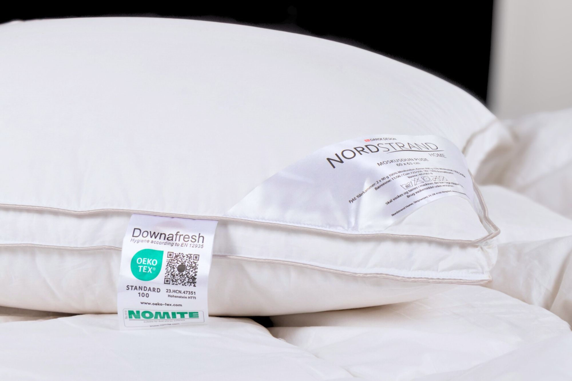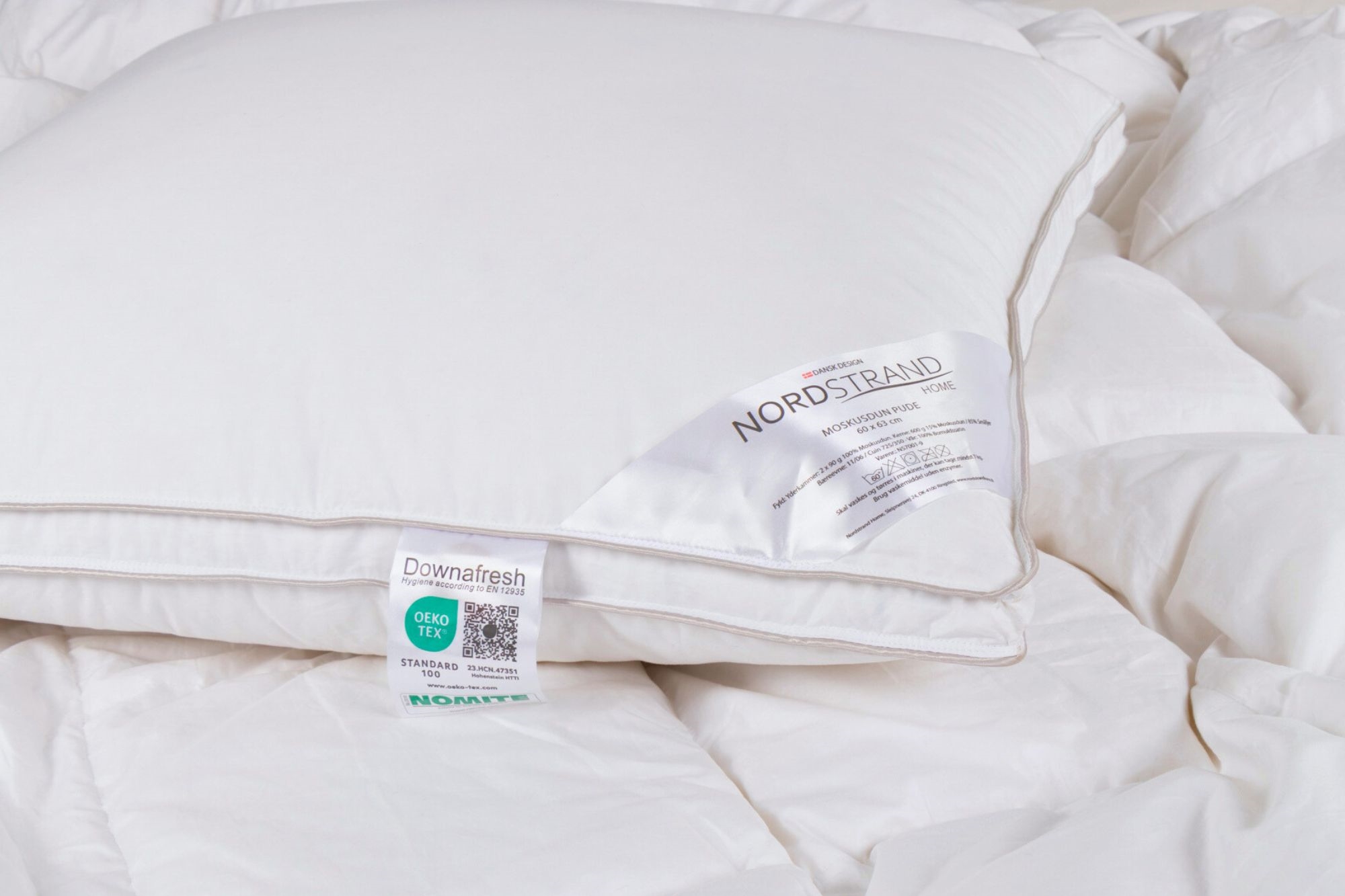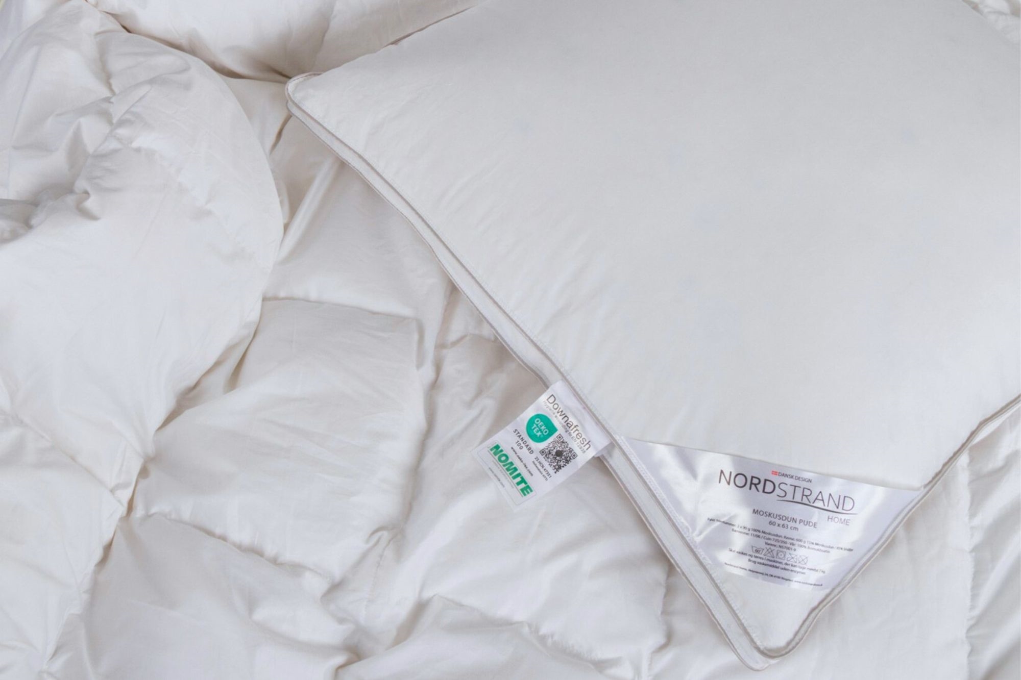 Home » Pillow Pillow with Musk Duck Down - 60x63 cm - Medium Pillow - 3 Chamber Down Pillow - Nordstrand Home Year Pillow Save50% Nordstrand Home 136,4968,49EURSave 68,- In stock Quantity Add to basket See more from: Nordstrand Home Item number: NS7001-9 Read our pillow guide Read about maintenance of duvets and pillows See our large selection of pillowcases Do you have questions about the product? High comfort & supportSoft down with adaptabilityStable core & good height Size: 60x63 cm Type: Medium pillow Construction: 3 chamber pillow with box edge Brand: Nordstrand Home Fill weight: 780g Outer chamber: 2x90g 100% musk duck down Core fill: 600g musk duck down/small feathers Fill power outer chamber: 11 / CUIN: 725 Fill power core: 11+6 / CUIN: 725+350 Cover: 100% cotton satin extra fine 80/80 Washing: 60° (Important to use enzyme-free detergent) Tumble drying: Yes Warranty: 5 years Certification: NOMITE - Free from house dust mites Certification: Downpass - Highest animal welfare standards Certification: DOWNAFRESH - 100% clean down Certification: EN12934 standard - Class 1 down Certification: STANDARD 100 by OEKO-TEX® (23.HCN.47531 Hohenstein HTTI). Your guarantee that the product is free from harmful chemicals. SOFTNESS: 100% musk duck down & cotton satin cover In the outer chambers of the pillow, you will find lovely small soft 100% pure musk duck down, which provides a wonderfully soft surface to lie on - on both sides. The soft down adapts well to you, providing extra comfort where you rest your head. The fine cotton satin cover makes the pillow's surface feel really soft. The dense weaving and the clean down (including DOWNAFRESH & NOMITE certification) also make the pillow suitable for allergy sufferers. SUPPORT: The pillow's 3 chambers The down pillow is divided into three chambers to create a pillow with adequate height and good support. The innermost chamber of the pillow ensures that the pillow maintains its height and creates a stable core - making the pillow suitable for you, whether you sleep best on your back or side. The two outer chambers, which embrace the stable core, are produced with 100% soft down. SMART: Box edge (panel sides) One of the latest constructions in pillows is the box edge - which indicates that the pillow is not assembled with an outer seam piping edge, but with two distributed 2.5 cm apart. The advantage of this construction form is that the filling in the down pillow can be better distributed all the way to the edge, and therefore does not create a pillow with most filling in the middle. This construction also makes the pillow more moldable, despite the pillow's three chambers. Also see our large selection of pillowcases in 60x63 cm here With Nordstrand Home, you are assured home textiles in Danish design - in Nordic style. Nordstrand Home places great emphasis on the feeling of well-being in a beautiful and relaxing environment. With Nordstrand Home products, you don't have to compromise, you will always find products among the large assortment of high quality and classic design in a modern interplay. Nordstrand Home – So you feel at home! Return to Pillow Customers also bought All-Season Pillow Luxury Duvet 140x220 cm - 100% Cotton Satin Muscovy Duvet - All-season Duvet - Nordstrand Home Muscovy Down Duvet In stock 585,49231,49EUR Add to basket The all-season pillow Luxury Duvet 140x200 cm - 100% Cotton Satin Moskus Duvet - All-season Duvet - Nordstrand Home Moskus Down Duvet In stock 544,49204,49EUR Add to basket All-season duvet 140x200 cm - With 100% musk duck down - Allergy-friendly down duvet - Nordstrand Home duvet In stock 340,49122,49EUR Add to basket Musk Down Pillow - 60x63 cm - Low Down Pillow - 3 Chamber Pillow - Nordstrand Home Musk Down Pillow In stock 95,4954,49EUR Add to basket Musk Down Pillow - 60x63 cm - High Pillow - 3 Chamber Down Pillow - Nordstrand Home Musk Down Pillow In stock 108,9974,99EUR Add to basket Stretch fitted sheet 90x200 cm - White jersey sheet - IN Style fitted sheet In stock 23,498,49EUR Add to basket Goose down pillow - 60x63 cm - Medium pillow with goose down - 3 chamber pillow - Borg Living In stock 176,9968,49EUR Add to basket Silk duvet with 100% Mulberry silk filling - 140x200 cm - Temperature-regulating all-season duvet from Borg Living In stock 272,4981,99EUR Add to basket Muscovy down duvet 140x200cm - Luxury all-season duvet - Dream by Borg - Princess In stock 571,49190,49EUR Add to basket Topper fitted sheet 180x200 cm - 100% soft cotton - Height 8 cm - White sheet for topper by Nordstrand Home In stock 68,4924,49EUR Add to basket