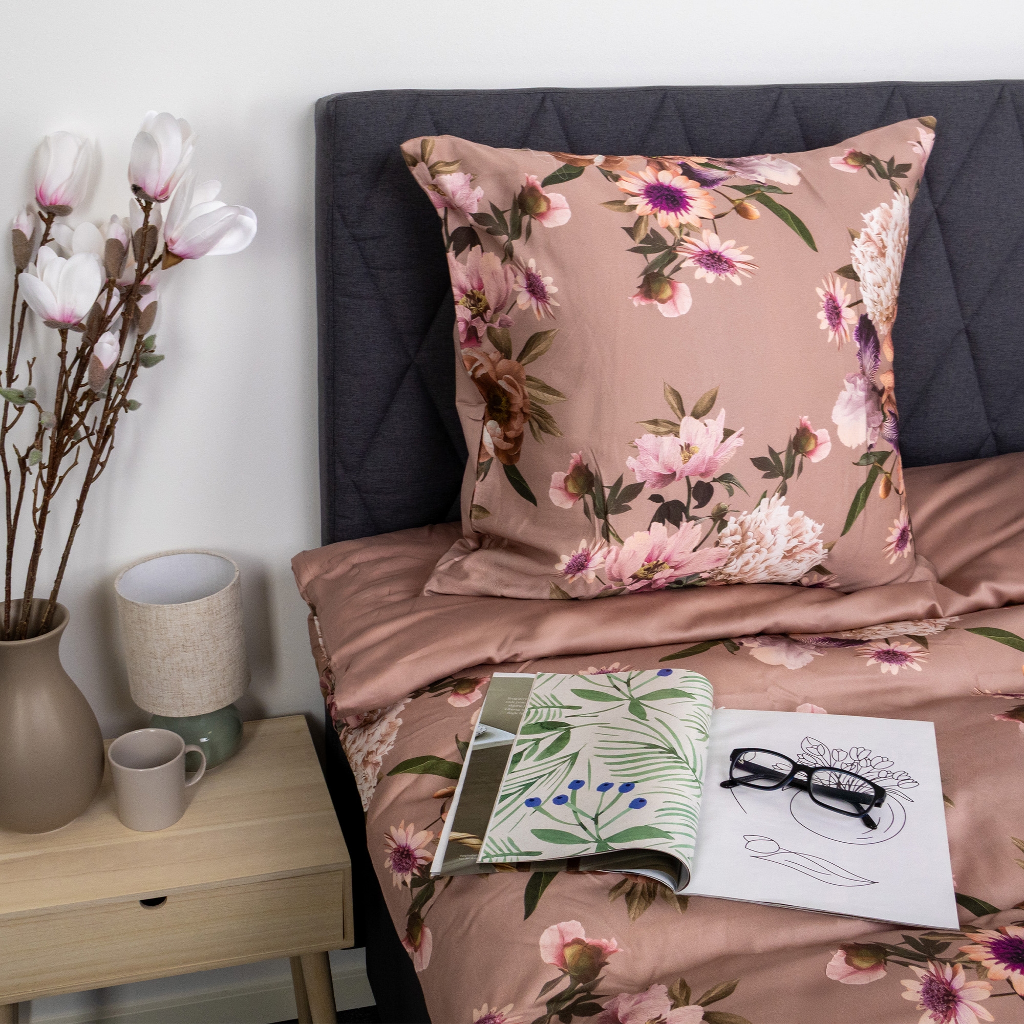 If you have extra pillows on the bed, you can easily supplement with an additional pillowcase in the same high quality. It creates a consistent and elegant look in the bedroom while giving the pillows the same comfort and finish. The pillowcase combines a beautiful floral print in nude and pink shades on one side with a calm, solid-colored reverse so you can easily change the look depending on mood and decor.