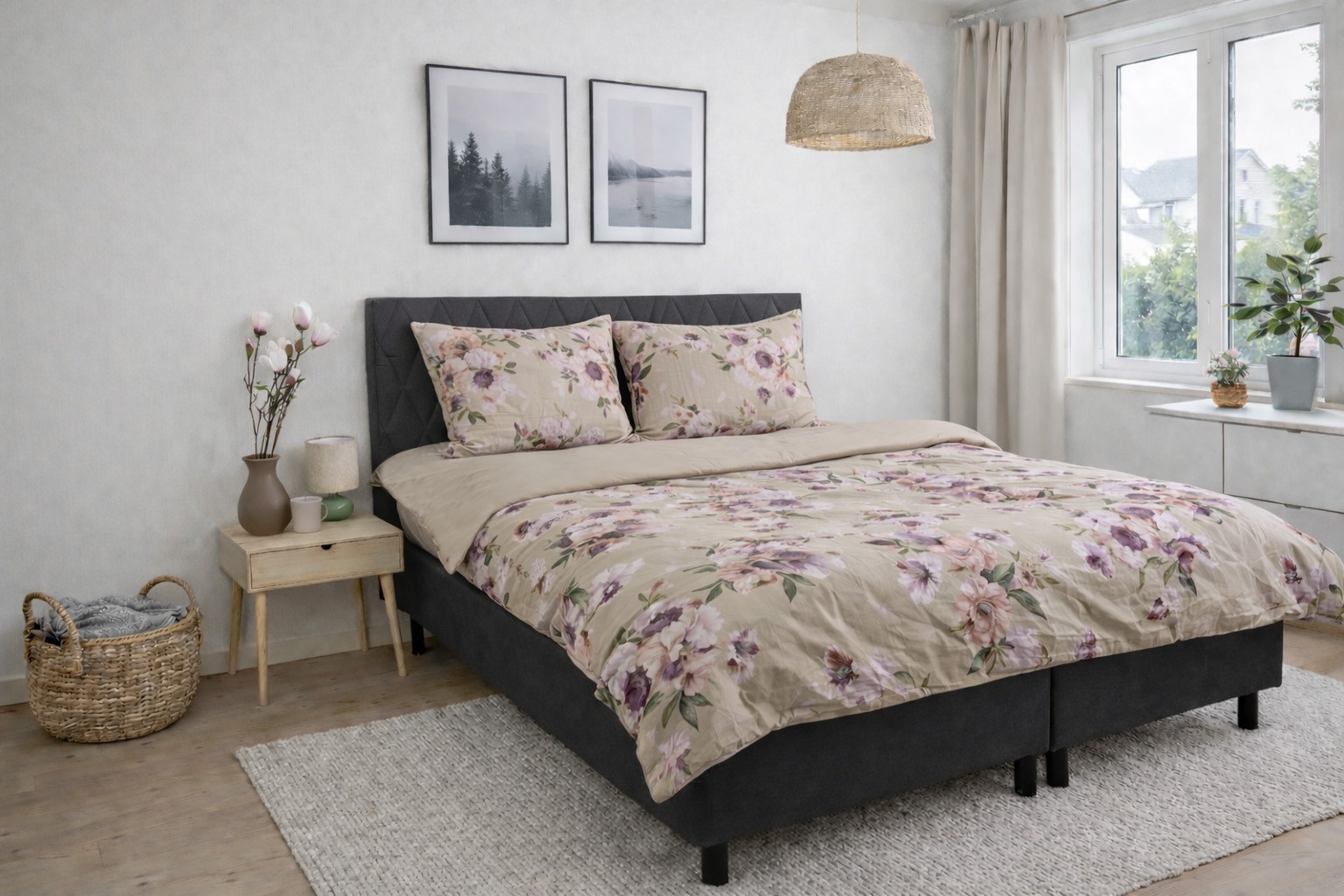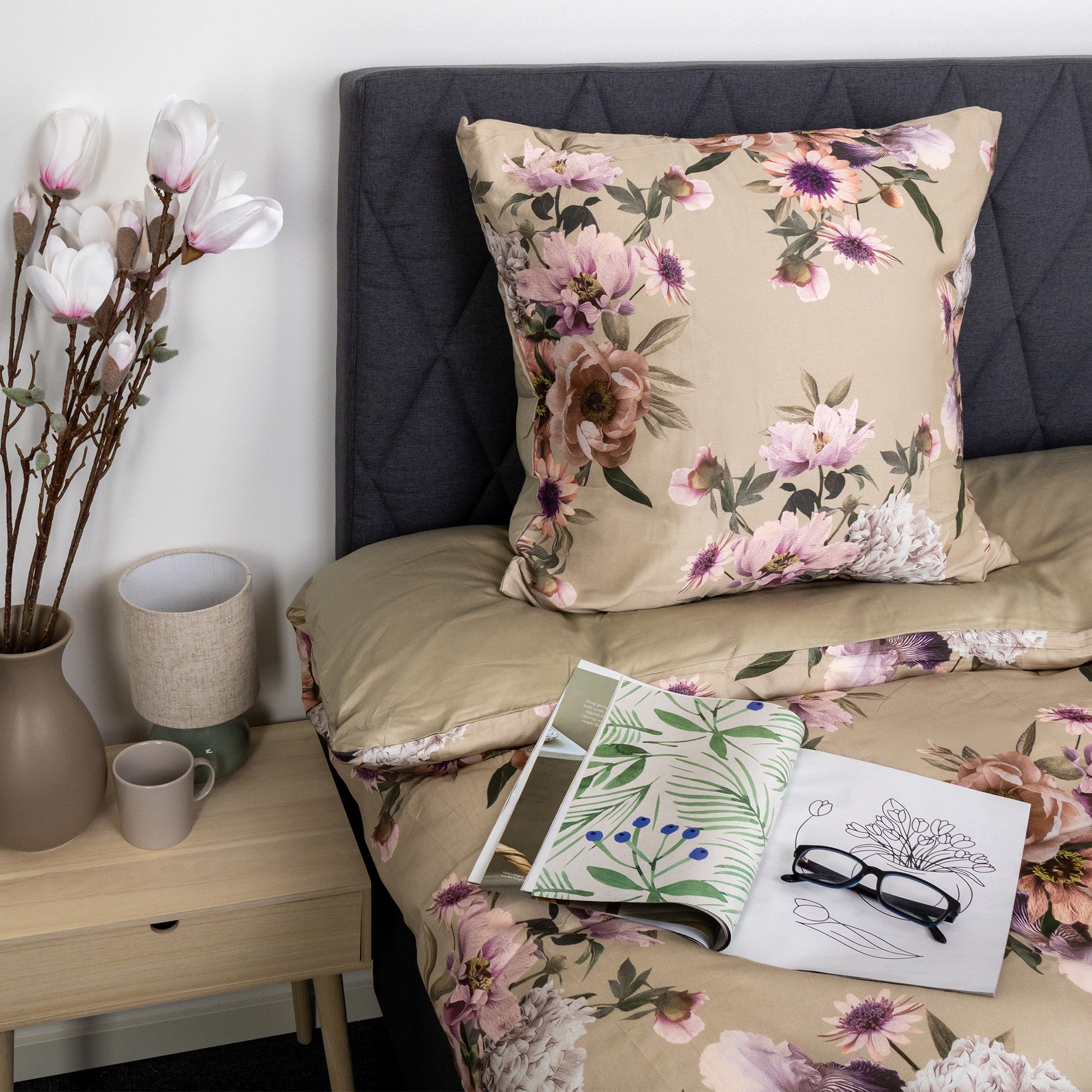 If you have extra pillows in the bed, you can easily add an extra pillowcase in the same high quality. It creates a uniform and elegant look in the bedroom, while the pillows get the same comfort and finish. The pillowcase combines a beautiful floral print in beige and sand tones on one side with a calm, solid-colour back, so you can easily change the look depending on mood and décor.