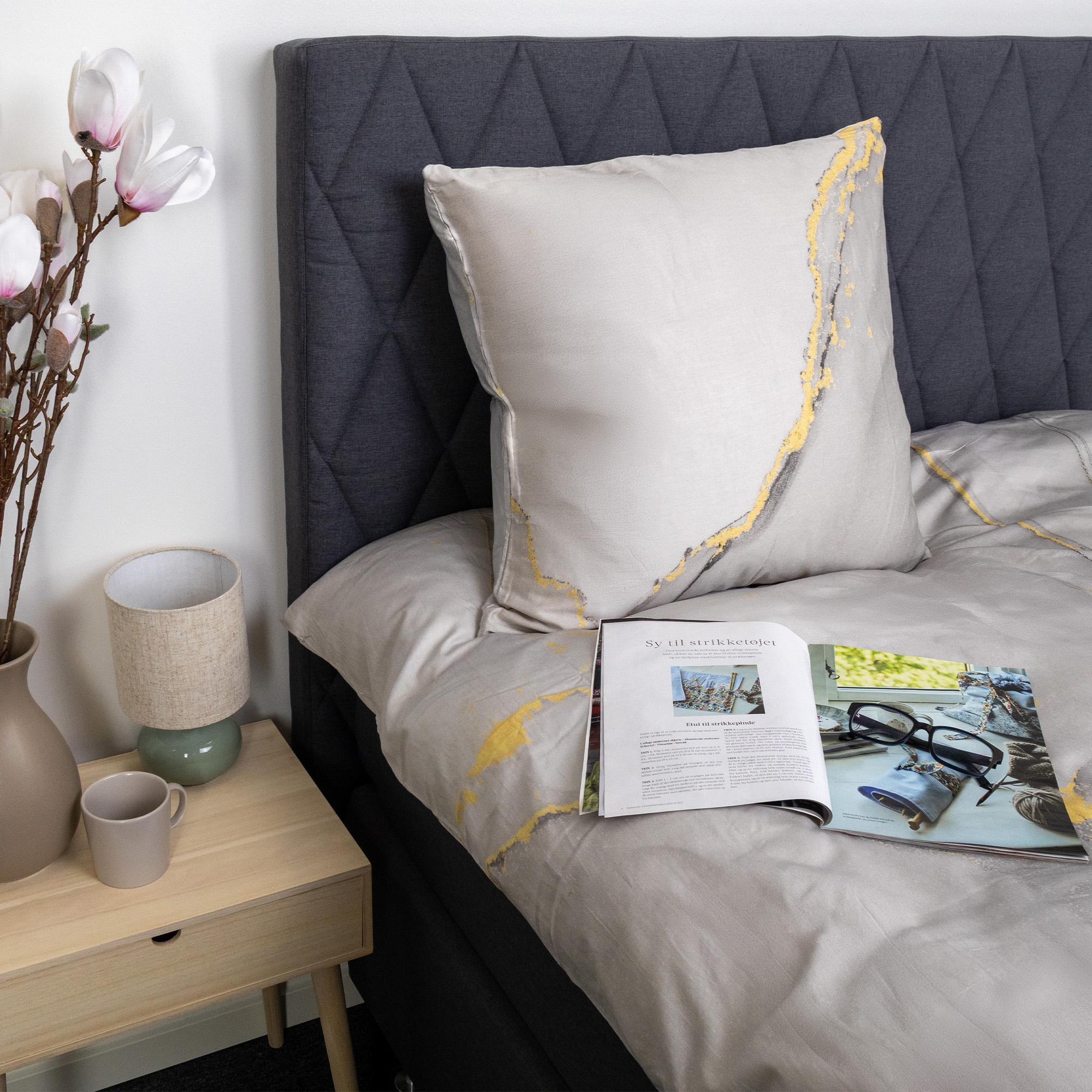 Give the bedroom an elegant and modern look with this cotton satin pillowcase in a gray marble look. The detailed marble digital print creates an exclusive 3D-like depth in the design, where the fine golden lines and soft color transitions give a sophisticated and artistic appearance.