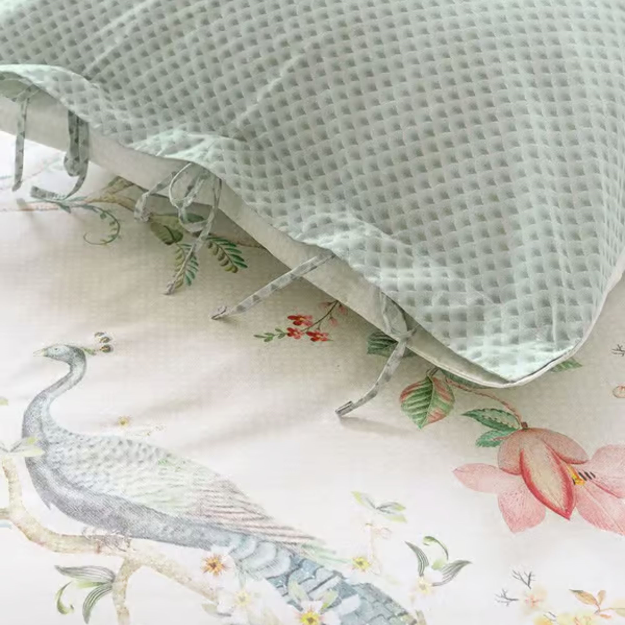 Home » Bedding » Single bedding » Extra long bedding 140x220 cm Pip studio bedding - 140x220 cm - Okinawa white - Floral bedding - Double-sided set - 100% cotton Save20% Pip Studio 136,49108,99EURSave 28,- Few in stock Select size Select a variant Quantity Add to basket See more from: Pip Studio Item number: 236522-2 Read our bedding guide Explore our extensive collection of sheets See our extensive selection of 140x220 duvets Do you have questions about the product? Bedding - 140x220 cm100% cottonPip Studio - Okinawa - White Duvet cover: 140x220 cm Pillowcase: 1 piece 60x63 cm Material: 100% cotton Weaving: Extra fine 200TC percale (Thread count = number of threads per square inch) Colour: White with floral/branch pattern Design: Okinawa - White Brand: Pip Studio Closure: Duvet and pillowcase with buttons Washing: 60°C Tumble drying: Yes Ironing: Yes Certification: STANDARD 100 by OEKO-TEX® (11-47893) PIP bedding is crafted from 100% cotton percale, offering an exceptionally soft feel while maintaining excellent durability. The duvet and pillow feature closures with internal buttons. Pip Studio originates from the Netherlands, evident in their uniquely designed patterns. The designers at Pip Studio draw their inspiration from sources like centuries-old tiles and wallpaper. Pip Studio is renowned for its cheerful colours and romantic style. With meticulous attention to detail and an array of beautiful shades, Pip Studio bedding adds a splash of colour to everyday life. The luxurious quality also ensures a restful night's sleep. Purchase lightweight pillowcases for your pillows here Revitalise your bed and bedroom with stunning and exquisite bedding like this set. At the same time, take the opportunity to ensure maximum sleep comfort by adding a new, soft, high-quality sheet. Explore our extensive range of quality sheets herepillows Return to Extra long bedding 140x220 cm Customers also bought Baby bedding 70x100 cm - 100% cotton satin - Classic white stripes In stock 47,9920,49EUR Add to basket Bamboo bedding 140x220 cm - 100% bamboo - Green In stock 149,9961,49EUR Add to basket Cotton towel - 100% cotton - Small guest towel 30x50 cm - Yellow In stock 9,994,49EUR Add to basket Cotton towel - 100% cotton - 50x90 cm - Yellow In stock 13,995,49EUR Add to basket Stretch fitted sheet 140x200 cm - Sand jersey sheet - 100% Cotton - Fitted sheet for mattress In stock 40,9923,49EUR Add to basket Pillow with Muscovy Down - High, Full Pillow - 3-Chamber Down Pillow - 60x63 cm - Premium By Borg In stock 231,49102,49EUR Add to basket Bed linen 140x200 cm - Cotton satin - Reversible dark blue floral bedding In stock 108,9947,99EUR Add to basket Pip Studio bedding - 140x220 cm - Okinawa blue - Floral bedding - Double-sided set - 100% cotton Few in stock 136,49108,99EUR Add to basket 2 x Pillowcases Bedding 200x220 cm - Okinawa blue - Reversible double duvet cover - 100% cotton - Pip Studio bedding Few in stock 204,49176,99EUR Add to basket 2 x Pillowcases Sengetøj 200x220 cm - Okinawa white - Vendbar dobbelt dynebetræk - 100% bomuld - Pip Studio sengetøj Few in stock 204,49176,99EUR Add to basket