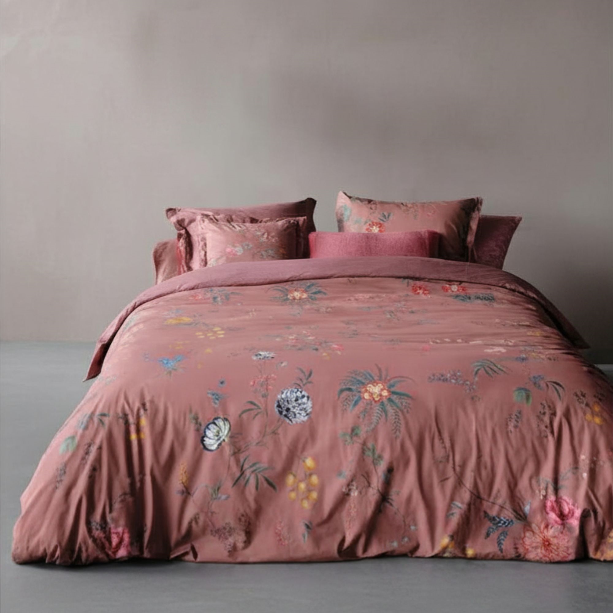 Home » Bedding » Single bedding » Single bedding 140x200 cm Pip Studio bedding set - 140x200 cm - Fleur Grandeur - Reversible duvet cover - 100% cotton bedding set Save22% Pip Studio 122,4995,49EURSave 27,- Few in stock Select size Select a variant Quantity Add to basket See more from: Pip Studio Item number: 7981-1 Read our bedding guide See our extensive selection of sheets Discover our comprehensive range of 140x200 duvets Do you have questions about the product? Bedding with a colourful pattern100% cottonPip Studio - Fleur Grandeur Duvet cover: 140x200 cm Pillowcase: 1 piece 60x63 cm Material: 100% cotton Weaving: Extra fine 200TC percale (Thread count = number of threads per square inch) Colour: Rose Design: Floral and solid colour Brand: Pip Studio Closure: Duvet and pillow covers with buttons Washing: 60° Tumble drying: Yes Ironing: Yes Certification: STANDARD 100 by OEKO-TEX® (11-47893) Pip Studio bedding is woven from 100% cotton percale, offering additional softness as well as good durability. The duvet and pillowcases are secured with internal buttons. Pip Studio originates from the Netherlands, which is reflected in their distinctive design patterns. The designers behind Pip Studio draw inspiration from elements like centuries-old tiles or wallpaper. Pip Studio is renowned for its vibrant colours and romantic style. With meticulous attention to detail and a palette of beautiful colours, Pip Studio bedding is perfect for adding a touch of colour to your everyday life. At the same time, the excellent quality helps to ensure a good night's sleep. Purchase lightweight pillowcases for your extra pillows here Refresh the bed and bedroom with a beautiful and luxurious bedding set like this. Simultaneously, seize the opportunity to ensure maximum sleeping comfort by adding a new, soft, high-quality sheet. Discover our extensive range of quality sheets here Return to Single bedding 140x200 cm Customers also bought Floral bedding - 140x200 cm - Royal Birds Khaki - Bed linen with a double-sided design - 100% cotton - Pip Studio Few in stock 108,9981,99EUR Add to basket Pip Studio bedding - 140x200 cm - Tokyo Blossom - Reversible duvet cover - 100% cotton bed set In stock 122,4995,49EUR Add to basket Bamboo sheet - Topper fitted sheet 180x200x8 cm - White - 100% bamboo - Sheet for mattress topper In stock 122,4954,49EUR Add to basket Bamboo sheet - Topper fitted sheet 180x200x8 cm - Sand - 100% bamboo - Sheet for mattress topper In stock 122,4954,49EUR Add to basket Pip Studio bedding set - 140x220 cm - Fleur Grandeur - Reversible duvet cover - 100% cotton bedding set In stock 136,49108,99EUR Add to basket 2 x Pillowcases Double bed linen 200x220 cm - 100% cotton satin - Green with dark green piped edge In stock 217,99108,99EUR Add to basket Bedding 140x200 cm - 100% cotton satin - Høie Of Scandinavia - Isabell Muted Green In stock 108,9981,99EUR Add to basket Bamboo bedding 140x200 cm - 100% bamboo - Beige striped In stock 136,4961,49EUR Add to basket Bamboo low children's pillow - 40x45 cm - Extra soft junior pillow - Borg Living In stock 36,9917,99EUR Add to basket Duvet and pillow set - All-season fiber duvet 140x200 cm + pillow 60x63 cm - Microfiber duvet - Borg Living In stock 122,4940,99EUR Add to basket