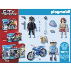 Home » Toy » Playmobil » PLAYMOBIL City Action » Police Police Bike: Pursuit of the Pickpocket - PL70573 - PLAYMOBIL City Action Playmobil City Action Great price:13,49EUR Few in stock Quantity Add to basket See more from: Playmobil City Action Item number: LEGPL70573 Do you have questions about the product? The police officer takes over the pursuit of the pickpocket on his bike. Return to Police