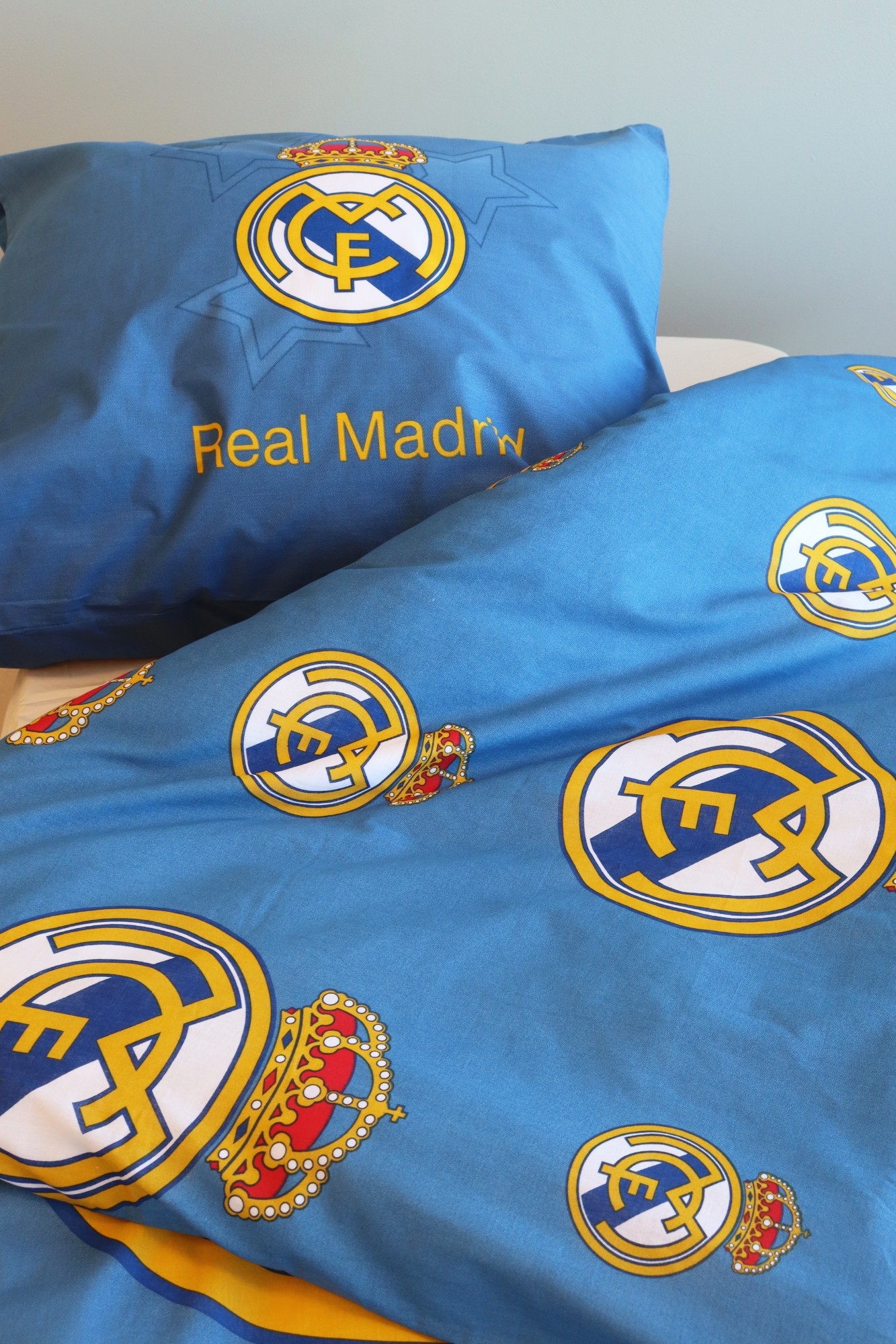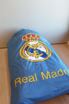 Home » Bedding » Children's bedding » Children's bedding 140x200 cm Real Madrid bedding - 100% cotton - Children's bedding 140x200 cm - Blue football bedding with stars Save28% Licens 47,9934,49EURSave 14,- In stock Quantity Add to basket See more from: Licens Item number: 9386-1 Read our bedding guide See our large selection of sheets See our large selection of duvets Do you have questions about the product? Soft quality that feels comfortable all nightReversible design for two looksSupport your favourite football team Duvet cover: 140x200 cm Pillowcase: 60x63 cm Material: 100% soft cotton Colour: Blue Design: Real Madrid Reversible: - Front: Print of Real Madrid's logo and stars - Back: All-over print with small logos Closure: Duvet cover with buttons and pillowcase with envelope closure Wash: 60°C Tumble dry: Yes Ironable: Yes Certification: STANDARD 100 by OEKO-TEX® (17.HPK.23879). Your guarantee that the product is free from harmful chemicals. Real Madrid bedding 140x200 cm – Blue reversible duvet set for football fans This children's bedding set is made from 100% soft cotton, combining high comfort with durable quality. The pure cotton makes the bedding breathable and comfortable against the skin, giving your child the best conditions for a good and secure night's sleep. When you choose children's bedding in 100% cotton, you get: Soft and comfortable against the skin High breathability for a healthy sleeping environment Durable material that withstands wash after wash Children's bedding must be able to withstand a lot. Therefore our cotton bedding can be washed at 60°C, which helps ensure a high level of hygiene. The high wash temperature helps remove bacteria and keeps the bedding fresh and clean. All our children's bedding in 140x200 is OEKO-TEX certified. It is your guarantee that the bedding has been tested and is free from harmful chemicals. When you choose OEKO-TEX certified bedding, you choose reassurance and safety for your child. Create a genuine football universe in the children's room with this Real Madrid bedding 140x200 cm in a beautiful blue colour with stars. This duvet set is perfect for young football fans who love Real Madrid CF and want their favourite team in bed with them. Browse for favourites and much more in our large selection of accessories for the children's room Return to Children's bedding 140x200 cm Customers also bought PlayStation bedding - 100% cotton - Children's bedding 140x200 cm - Gray PS5 bedding In stock 47,9927,49EUR Add to basket
