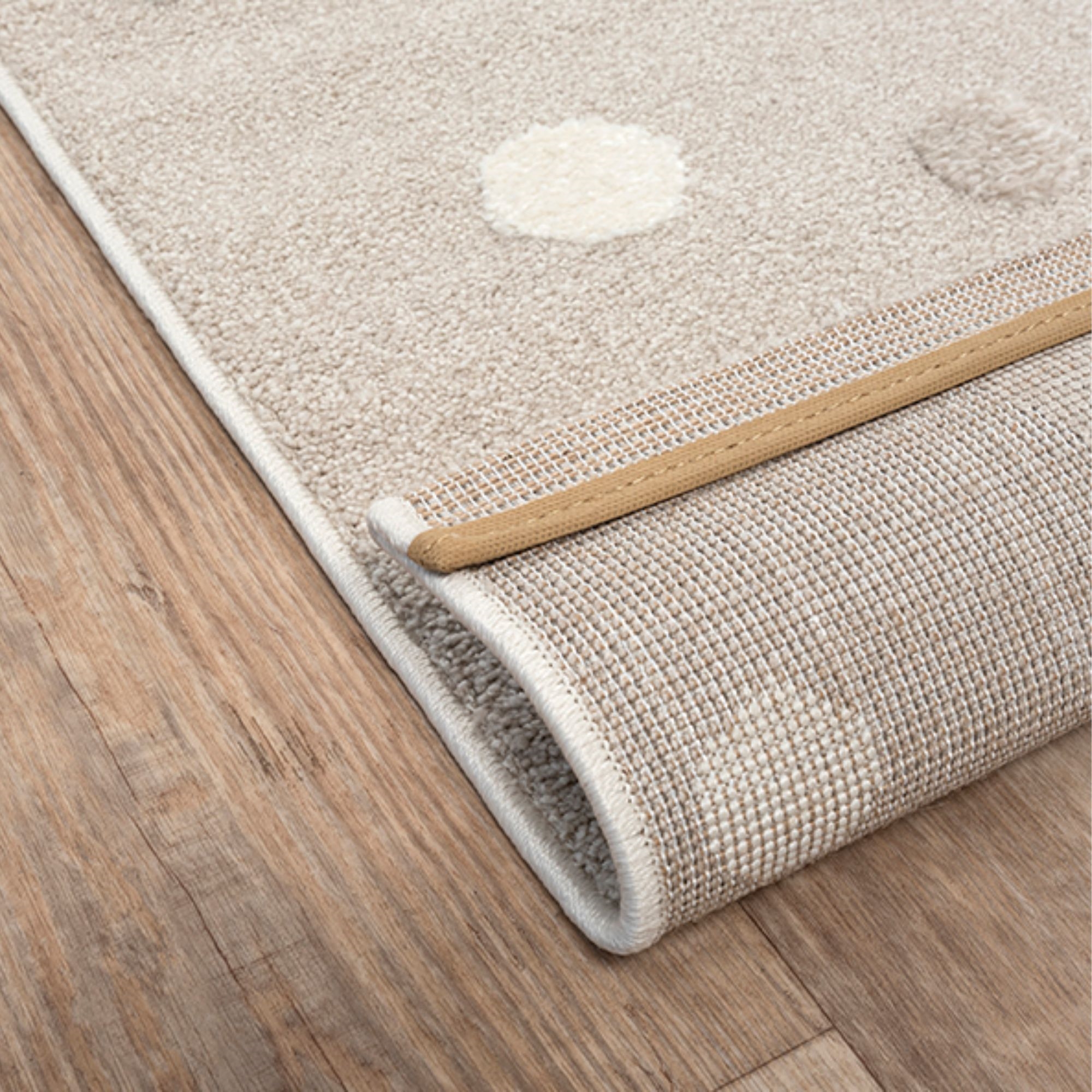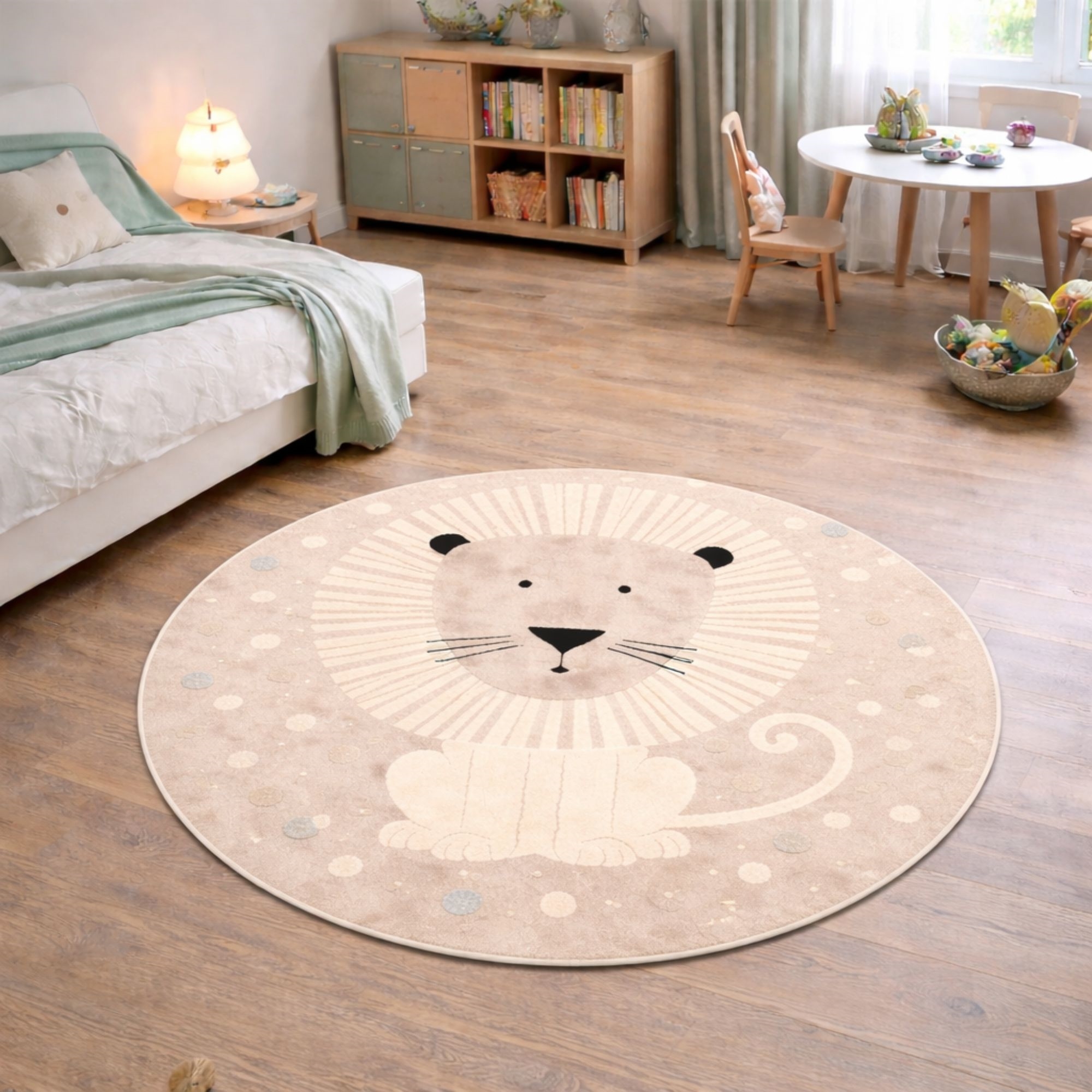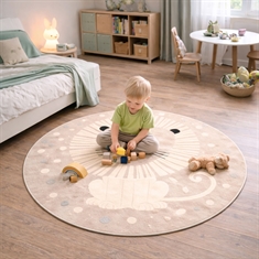 Home » Interior Design » Decorations » Rugs Round children's rug - Ø 120 cm - Woven - Beige - Elio - Nordstrand Home Save25% Nordstrand Home 81,4960,99EURSave 21,- In stock Quantity Add to basket See more from: Nordstrand Home Item number: TA1045-8 See our large selection of artificial plants and flowers See our selection of mats See our large selection of everything for your home decor Do you have questions about the product? Cute children's rug in beige with a lionEasy and simple maintenancePleasant surface for play on the floor Type: Short pile rug Size: Ø 120 cm Thickness: 14 mm Color: Beige with motif Design: Elio Kids Material: 50% PP (polypropylene) and 50% PES (polyester) Back: Jute Usage: Indoor Brand: Nordstrand Home Number of points/m2/densely woven: 204,000 Recommended maintenance: Vacuuming & damp cloth Certification: STANDARD 100 by OEKO-TEX® (11.HTR.94219). Your guarantee that the product is free from harmful chemicals. Are you missing a simple and easy way to create cohesion in your home? Then this beautiful rug can be the element that ties the decor together. Cute beige rug with a lion motif from Elio Kids - the perfect choice for a cozy and inviting children's room. The sweet lion design creates a playful atmosphere, while the round shape of 120x120 cm gives a soft presence in the room. The rug is ideal as a play rug in the middle of the floor, by the bed or in a cozy play corner. The combination of 50% polyester (PES) and 50% polypropylene (PP) makes the rug both durable and easy to maintain, which is ideal for an active children's room. A round lion rug like this is not only a practical solution – it is also a decorative detail that adds personality and warmth to the children's room. See our large selection of various children's textiles here With Nordstrand Home you are assured home textiles in Danish design - in a Nordic style. Nordstrand Home places great emphasis on the feeling of well-being in a beautiful, yet relaxed environment. With Nordstrand Home you don't have to compromise; you will always find products in classic and fashionable colors. Nordstrand Home – So you'll feel at home! Return to Rugs