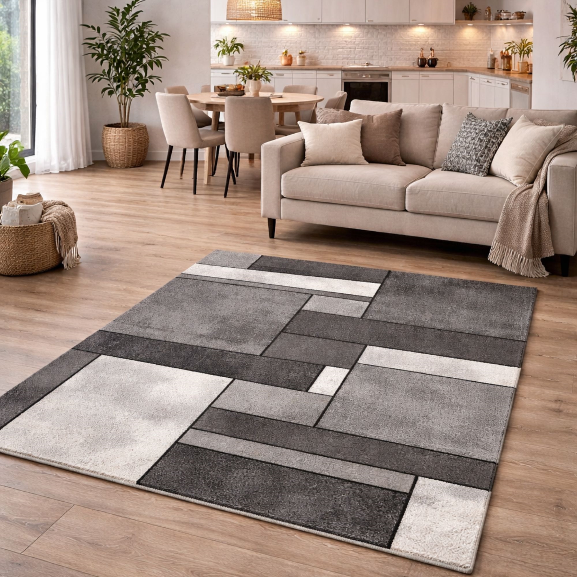 Home » Interior Design » Decorations » Rugs Rug - 120x170 cm - Gray with pattern - Brilliance - Nordstrand Home Save10% Nordstrand Home 135,99122,49EURSave 14,- In stock Quantity Add to basket See more from: Nordstrand Home Item number: TA1027-13 See our wide range of artificial plants and flowers See our selection of mats See our wide range of everything for your home decor Do you have questions about the product? Elegant gray color composition with patternDensely woven and with soft fibresPerfect rug under the sofa and coffee table Type: Short pile rug Size: 120x170cm Thickness: 13 mm Color: Gray with pattern Design: Brilliance Material: 100% polypropylene Backing: Jute Use: Indoor Brand: Nordstrand Home Points/m2/tightly woven: 288,000 Recommended maintenance: Vacuuming & damp cloth Certification: STANDARD 100 by OEKO-TEX® (11.HTR.94219). Your guarantee that the product is free from harmful chemicals. Are you missing a simple and easy way to create cohesion in your home? Then this beautiful rug can be the element that ties your interior together. Create a clean and modern expression in the home with this patterned gray rug from the Brilliance series. The rug combines several elegant gray tones in a dynamic geometric design that gives the room depth, movement and character. It is an ideal choice for the living room, under the sofa or in a modern lounge where comfort, quality and design should come together. The rug has a soft and pleasant surface that feels comfortable underfoot and also contributes to a sound-dampening effect in the room. The combination of the modern gray pattern, the soft pile and the strong construction makes this rug an obvious choice for those who want a decorative and practical rug that creates cohesion and warmth in the interior. See our wide range of home textiles here With Nordstrand Home you are guaranteed home textiles in Danish design - in a Nordic style. Nordstrand Home places great emphasis on the feeling of wellbeing in a beautiful, yet relaxed environment. With Nordstrand Home you do not need to compromise; you will always find products in classic and fashionable colours. Nordstrand Home – So you feel at home! Return to Rugs