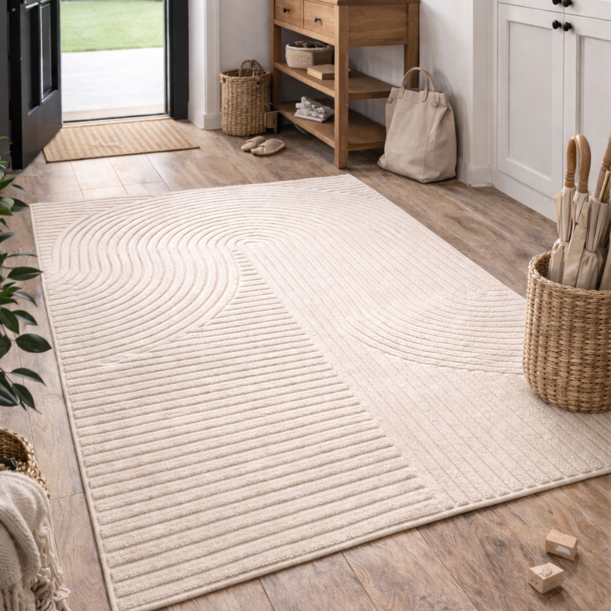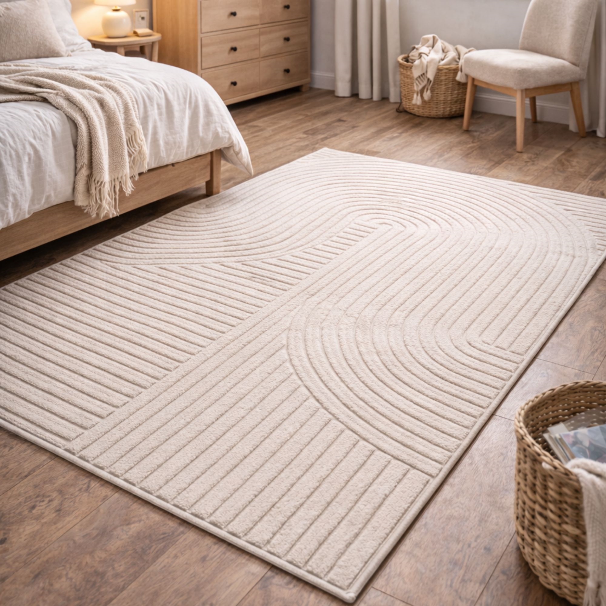 Home » Interior Design » Decorations » Rugs Rug - 140x200 cm - Woven - Cream-coloured with pattern - Elio - Nordstrand Home Save17% Nordstrand Home 162,99135,99EURSave 27,- In stock Quantity Add to basket See more from: Nordstrand Home Item number: TA1024-3 See our large selection of artificial plants and flowers See our selection of mats See our large selection of everything for your home decor Do you have questions about the product? Stylish rug with dense weaving and attractive texturePerfect size for an entryway, hallway or beside the bedElegant tone-on-tone design with soft shapes Type: Short pile rug Size: 140x200 cm Thickness: 12 mm Colour: Solid cream Design: Elio Material: 50% PP (polypropylene) and 50% PES (polyester) Backing: Jute Use: Indoor Brand: Nordstrand Home Number of points/m2/densely woven: 76.800 Recommended maintenance: Vacuuming & damp cloth Certification: STANDARD 100 by OEKO-TEX® (11.HTR.94219). Your guarantee that the product is free from harmful chemicals. Are you missing a simple and easy way to create cohesion in your home? Then this beautiful rug can be the element that ties your interior together. This beautiful, modern rug can easily lift the room's expression - partly because it combines comfort, durability and a stylish graphic design in one solution. The light tone-on-tone pattern with soft, organic curves enlivens the home and fits perfectly into both Nordic and minimalist interiors. The cream shade gives the room a bright and inviting expression and works well with everything from light wood tones and beiges to more contrasting surroundings. A rug suitable for the entryway, hallway, living room or beside the bed, where you want a soft and pleasant surface. The short- to medium-pile quality makes the rug easy to keep clean, as dust and dirt have difficulty penetrating the fibres. Regular vacuuming is enough to preserve the attractive appearance. With this beautiful rug you get something that is both stylish and hard-wearing, combining modern design with comfort – ideal for those who want a decorative and practical rug for the smaller areas of the home. See our large selection of different home textiles right here With Nordstrand Home you are guaranteed home textiles in Danish design - in a Nordic style. Nordstrand Home places great emphasis on the feeling of well-being in a beautiful yet relaxed environment. With Nordstrand Home you don't have to compromise; you will always find products in classic and fashionable colours. Nordstrand Home – So you feel at home! Return to Rugs