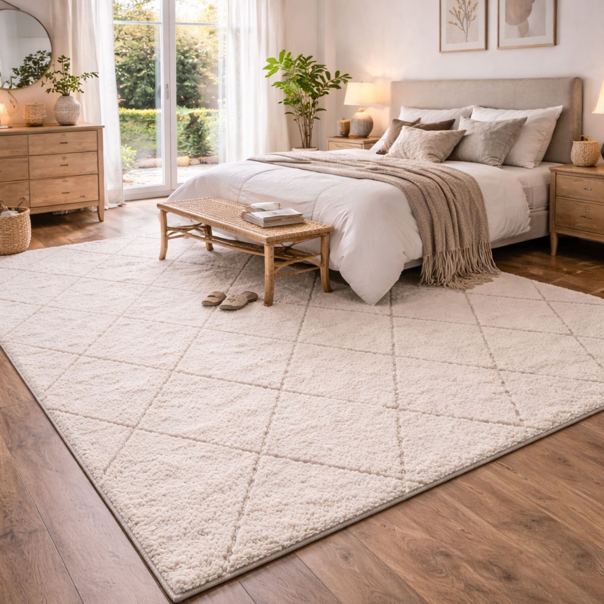 Home » Interior Design » Decorations » Rugs Rug - Shaggy - 200x290 cm - Cream - Ideal Shaggy - Nordstrand Home Save11% Nordstrand Home 244,99217,49EURSave 28,- In stock Quantity Add to basket See more from: Nordstrand Home Item number: TA2004-15 See our large selection of artificial plants and flowers See our selection of doormats See our large selection of everything for your home decor Do you have questions about the product? High and full shaggy textureLovely soft rug - perfect for living room and bedroomSubtle geometric check pattern Type: Long pile rug Size: 200x290 cm Thickness: 30 mm Color: Cream Design: Ideal Shaggy Material: Polypropylene pile and polyester crimp Backing: Jute Use: Indoor Brand: Nordstrand Home Tufts/m2/densely woven: 89,600 Recommended maintenance: Vacuuming & damp cloth Are you looking for a simple and easy way to create cohesion in your home? Then this beautiful rug could be the element that ties your interior together. Do you dream of an extra soft and inviting rug that adds warmth and luxury to your home? The Ideal Shaggy in beige is an exclusive long-pile rug with an impressive pile height of 30 mm, giving a wonderfully soft and pleasant feel underfoot. The rug works ideally in the living room, bedroom or guest room where comfort and coziness are the focus. The full texture ensures a dense and even surface that gives a beautiful and exclusive look.. With the Ideal Shaggy beige you get a rug that not only looks great but also feels fantastic. It is the obvious choice if you want a soft shaggy rug with high comfort, a modern expression and long durability. See our large selection of various home textiles right here With Nordstrand Home you are guaranteed home textiles in Danish design - in a Nordic style. Nordstrand Home places great emphasis on the feeling of wellbeing in a beautiful yet relaxed environment. With Nordstrand Home you do not have to compromise; you will always find products in classic and fashionable colours. Nordstrand Home – So you feel at home! Return to Rugs Customers also bought "Bamboo" Bamboo towel - 50x100 cm - Bamboo/cotton - Black In stock 34,4917,99EUR Add to basket