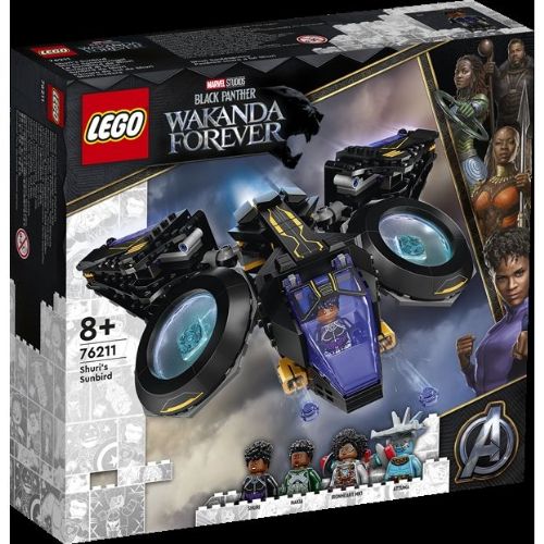 Home » All LEGO products Shuris Sunbird - 76211 - LEGO Super Heroes LEGO Super Heroes Great price:61,49EUR Few in stock Quantity Add to basket See more from: LEGO Super Heroes Item number: LEG76211 Do you have questions about the product? Black Panther action with Shuri aboard the Sunbird planeFans of Black Panther can join Shuri, Ironheart MK1, Nakia and Attuma on imaginative adventures aboard the versatile Sunbird plane. Return to All LEGO products