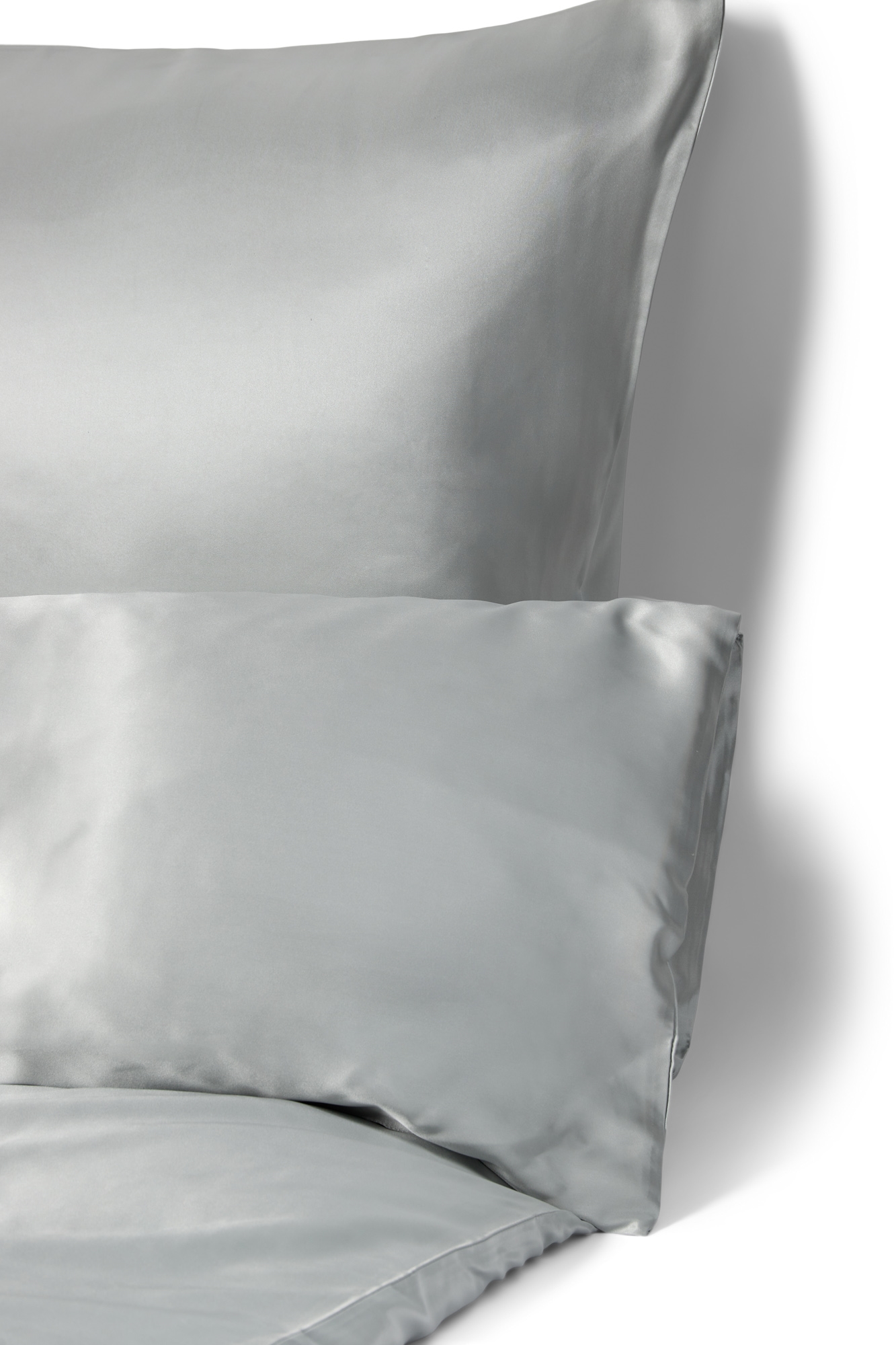 Home » Bedding » Double bedding » Double bedding 200x220 cm Silk bed linen 200x220 cm - Dusty grey bed linen for double duvet - 100% mulberry silk - By Borg 2 x PillowcasesSave31% By Borg 571,49394,99EURSave 177,- In stock Quantity Add to basket See more from: By Borg Item number: 2112-5 Read our bedding guide See our extensive selection of sheets Discover our wide range of 200x220 duvets Do you have questions about the product? Luxurious bedding of the softest qualityTemperature-regulating and hypoallergenic100% mulberry silk with a high momme of 19 Duvet cover: 200x220 cm Pillowcase: 2 pieces 60x63 cm Material: 100% mulberry silk Weaving: Silk with 19 momme satin weave Colour: Dusty grey Design: Solid colour grey silk bedding Brand: By Borg Closure: Duvet and pillowcase with buttons - Tie cords at the duvet corners Washing: 30° (Important to use Enzyme-free detergent) Tumble drying: No Ironing: No Certification: STANDARD 100 by OEKO-TEX® (xxx) Sleep like a dream - let your dreams run free and embark on an adventure. This exclusive silk bed linen is perfect for those who seek the best in comfort, well-being, and pure indulgence. Experience pure luxury and the renowned hotel feeling in your home. If you are looking for bed linen that is elegant yet durable, silk bedding is an excellent choice. The bed set is made from the finest mulberry silk, in a robust silk satin quality with a high momme of 19. Silk is measured in momme weight, which indicates the silk's quality and durability. The higher the momme weight, the better the silk bedding. A momme weight of 19 is ideal and suitable for crafting high-quality silk bedding. The fibres in the silk resist creases and irregularities, ensuring the bedding remains wrinkle-free and requires no ironing. Silk bed linen has cooling properties, meaning it adjusts to your body's temperature, providing a temperature-regulating effect. The bed linen can help reduce uncomfortable night sweats. Additionally, the bedding set is moisture-absorbent, antibacterial, and hypoallergenic. If you experience skin irritation or dry hair, silk bedding would be an excellent choice. It is ideal for delicate or sensitive skin, thanks to its fine and soft surface. Silk doesn't draw out the natural oils and moisture from your skin and hair, maintaining their natural hydration levels. Mulberry silk has a positive effect on your skin and hair. Buy pillowcases for your extra pillows here Silk bedding can be washed at 30° gentle cycle with enzyme-free detergent, and it should be washed separately. This lightweight bedding set should not be tumble dried but air-dried instead. Discover our extensive range of quality sheets here, including luxurious silk sheets Return to Double bedding 200x220 cm