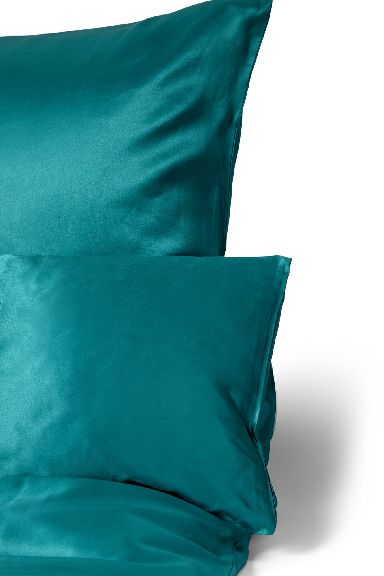 Home » Bedding » Single bedding » Extra long bedding 140x220 cm Silk bedding 140x220 cm - Dusty green bedding - 100% mulberry silk bedding - By Borg Save31% By Borg 394,99272,49EURSave 123,- In stock Quantity Add to basket See more from: By Borg Item number: 2113-2 Read our bedding guide See our extensive selection of sheets Explore our wide selection of 140x220 duvets Do you have questions about the product? Luxurious bedding of the softest qualityTemperature-regulating and hypoallergenic100% mulberry silk with a high momme of 19 Duvet cover: 140x220 cm Pillowcase: 1 pc. 60x63 cm Material: 100% mulberry silk Weaving: Silk with 19 momme satin weave Colour: Dusty green Design: Solid colour green silk bedding Brand: By Borg Closure: Duvet and pillowcase with buttons - Tie strings for duvet corners Washing: 30° gentle wash (Important to use Enzyme-free detergent) Tumble drying: No Ironing: No Certification: STANDARD 100 by OEKO-TEX® (xxx) Sleep like a dream - let your dreams run free and embark on an adventure. This exclusive silk bed linen is perfect for those who seek the best in comfort, well-being, and pure indulgence. Experience pure luxury and the renowned hotel feeling in your home. If you are looking for bed linen that is elegant yet durable, silk bedding is an excellent choice. The bed set is made from the finest mulberry silk, in a robust silk satin quality with a high momme of 19. Silk is measured in momme weight, which indicates the silk's quality and durability. The higher the momme weight, the better the silk bedding. A momme weight of 19 is ideal and suitable for crafting high-quality silk bedding. The fibres in the silk resist creases and irregularities, ensuring the bedding remains wrinkle-free and requires no ironing. Silk bed linen has cooling properties, meaning it adjusts to your body's temperature, providing a temperature-regulating effect. The bed linen can help reduce uncomfortable night sweats. Additionally, the bedding set is moisture-absorbent, antibacterial, and hypoallergenic. If you experience skin irritation or dry hair, silk bedding would be an excellent choice. It is ideal for delicate or sensitive skin, thanks to its fine and soft surface. Silk doesn't draw out the natural oils and moisture from your skin and hair, maintaining their natural hydration levels. Mulberry silk has a positive effect on your skin and hair. Buy pillowcases for your extra pillows here Silk bedding can be washed at 30° gentle cycle with enzyme-free detergent, and it should be washed separately. This lightweight bedding set should not be tumble dried but air-dried instead. Discover our extensive range of quality sheets here, including luxurious silk sheets Return to Extra long bedding 140x220 cm Customers also bought Silk duvet 140x220 cm - Nordic Comfort all-season duvet - Excellence Silk long-fibre 100% mulberry silk In stock 870,99476,49EUR Add to basket