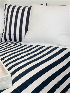 Home » Bedding » Double bedding » Double bedding 200x200 cm Striped bedding for double duvet - 200x200 cm - Soft cotton satin - Nordic Stripe - Blue and white bedding set 2 x PillowcasesSave56% Borg LivingBy Night 122,4954,49EURSave 68,- In stock Quantity Add to basket See more from: Borg Living Item number: 353-4 Read our bedding guide Explore our extensive collection of sheets View our broad range of duvets 200x200 Do you have questions about the product? Nordic Stripe100% cotton satinExtra soft and fine. Duvet cover: 200x200 cm Pillowcase: 2 pieces 60x63 cm Material: 100% soft cotton satin Weaving: Extra fine 230TC (Thread count = number of threads per square inch) Colour: Blue and white Design: Nordic Stripe Brand: By Night Closure: Duvet and pillowcases with concealed YKK zips Wash: 60° Tumble drying: Yes Ironing: Yes Certification: STANDARD 100 by OEKO-TEX® (2018OK0658) Nordic stripe bedding is crafted from 100% cotton satin, featuring an exceptionally fine and dense weave. This bedding boasts a natural gloss and softness, lending the set an elegant appearance while feeling luxuriously soft and pleasant against the skin. Cotton satin is breathable and aids in regulating body temperature, offering year-round comfort. It is also durable, 100% colour-fast, and wear-resistant, ensuring long-lasting quality and beauty even after multiple washes. The bedding is OEKO-TEX® certified. This certification guarantees that the product is free from harmful substances and manufactured under suitable conditions, allowing you to sleep securely each night while being mindful of the environment. The duvet and pillowcase feature discreet hidden YKK zips. Shop matching pillowcases for your pillows here Revitalise your bedroom with a beautiful and exquisite bedding set like this. At the same time, seize the opportunity to enhance sleep comfort by adding a new, soft, high-quality sheet. Explore our extensive range of quality sheets herepillows By Night is known for Danish design, providing comfortable sleep components for your nighttime environment of the highest quality. By Night produces bedding and sheets for the entire family, placing great emphasis on current trends, ensuring that their production always includes fashionable colours and designs. Return to Double bedding 200x200 cm Customers also bought Mattress topper - 80x200 cm, 5 cm high - NASA Memory foam - Borg Living - Ergonomic design In stock 326,9981,99EUR Add to basket Diamond Face cloth - 30x30 cm - Diamond - Anthracite - 100% Cotton - Soft face cloths from Egeria In stock 9,995,49EUR Add to basket Junior Bedding 100x140 cm - Bulldozer - Bedding Set with Excavator - 2 in 1 Design - 100% Cotton In stock 47,9934,49EUR Add to basket Tractor Towel - 70x140 cm - 100% Cotton - Soft Bath Towel with a Blue Tractor In stock 27,4917,99EUR Add to basket 100% Muscovy down in outer chamber Pillow with muscovy down - 60x63 cm - 3-layered down pillow - SLEEP TECH By Borg In stock 176,9968,49EUR Add to basket Pip Studio bedding - 140x200 cm - Fleur khaki - Floral bedding - Double-sided set - 100% cotton In stock 122,4995,49EUR Add to basket 2 x Pillowcases Bedding 200x200 cm - Flower Blue flannel bedding - Floral design - 100% cotton flannel - By Night In stock 108,9954,49EUR Add to basket Stretch fitted sheet 70x140 cm - White - Cotton fitted sheet for junior mattress In stock 20,4910,99EUR Add to basket Bedding in 100% cotton satin - 140x200 cm - White solid colour set - Borg Living bed linen In stock 81,9927,49EUR Add to basket 2 x Pillowcases Double duvet bedding 200x200 cm - White bed linen 100% cotton satin - Borg Living bedding In stock 136,4954,49EUR Add to basket