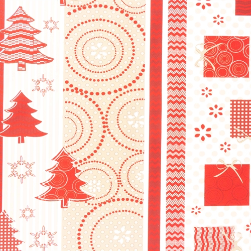 Our textile wax cloth with a Christmas tree and gift motif is the ideal choice to create a festive atmosphere for your dinner. With its 140cm in width, it is wide enough to fit any dining table. It can be cut by the meter as you wish.