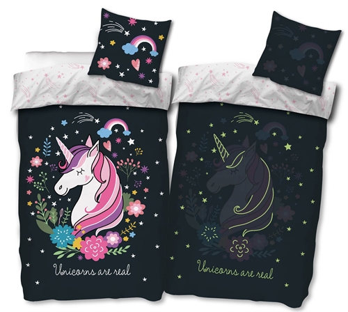 Home » Bedding » Children's bedding » Junior bedding 100x140 cm Save43% Licens Unicorn bedding 100x140 cm - Bedding set with unicorn - 2 in 1 design - Glow in the dark bedding - 100% cotton High breathability100% soft cottonOEKO-TEX® certified Select size Select a variant 47,9927,49EURSave 21,- Quantity Add to basket In stock Delivery: 1-2 days Item number: 288-8 You might also be interested in: Specifications Duvet cover: 100x140 cm - junior bedding set Pillowcase: 40x45 cm Material: 100% soft cotton Color: Large Motif: Unicorn Design: Reversible - Glow in the dark front with unicorn motif, reverse side with all-over print of shooting stars Closure: Duvet with buttons and pillowcase with overlap Wash: 60° Tumble dry: Yes Ironing safe: Yes Certification: STANDARD 100 by OEKO-TEX®. Your guarantee that the product is free from harmful chemicals. Soft junior bedding in 100% cotton, with a cool glow in the dark design featuring a unicorn. Made with light and breathable cotton threads that provide a softness making the duvet feel lovely for your child to sleep with. The balance of natural properties and comfort from the soft material, combined with the cool glow in the dark design, makes this set a sure favourite for your child. Glow in the dark bedding with a unicorn. The bedding set is reversible with different motifs on front and back. The front shows a unicorn surrounded by flowers and stars, and the back is filled with small shooting stars. Besides the charming design, the bedding set has an extra surprise, a Glow in the dark effect that lights up the room when the lights are off - a fun and cozy detail that all children will love. The bedding set is made of 100% cotton, which makes the set durable, comfortable and ensures high absorption and breathability. The bedding is also OEKO-TEX certified, which guarantees that the set is free from harmful chemicals. Browse for favourites and much more in our large selection of accessories for the children's universe For the child, the bed should be a safe place and all elements should together create soft and lovely surroundings for the child to find peace in. Therefore, feel free to use the child's interests to create a safe sleeping room for the child. With us, you can find a large selection of accessories for the bed and children's room, ranging from fitted sheets to duvets, pillows, bedding and much more, and lots of products with all the children's favourites. All elements that can help create the right sleeping environment and room for your child. Here you can find lovely and soft quality fitted sheets Read our bedding guide See our large selection of fitted sheets See our large selection of duvets 100x140 Do you have questions about the product? Read moreHide FAQ - Frequently Asked QuestionsWhat are the delivery times and shipping costs?At HOME-TEX.com we pack all orders daily and can generally promise that your items will be shipped quickly. HOME-TEX.com offers fast delivery once your order has been processed. For specific shipping costs in your region, please check the shipping information, as these can vary by country.What if I want to return my order?HOME-TEX.com offers an unlimited right of return, which means you can return your item as long as it is unused and in its original condition and packaging.How do I return an item?If you wish to return an item, you may use any shipping provider of your choice to send it back to the return address. Be sure to include your order confirmation in the return package so we can identify your order. You are free to choose any carrier that delivers within our customer service opening hours. Can I pay with PayPal?Yes — on HOME-TEX.com you can securely and conveniently pay for your order using PayPal at checkout. This allows you to pay using your PayPal account details without sharing your payment information directly with the shop.What should I do if my item is damaged?If you receive an item that is defective or damaged, please contact our customer service as soon as possible so we can assist you with a return or replacement. Return to Junior bedding 100x140 cm You might also be interested in: Junior bedding 100x140 cm - Soft white bedding set in 100% Egyptian cotton satin - Turiform bed linenHigh quality Extra fine, soft & breathable Jacquard woven Guideline sales price : 61,22 Save : 13,23 68,49 EUR47,99 EUR (incl. VAT) Junior mattress protector - 70x140 cm - Boiled Cotton - Borg LivingBreathable and hypoallergenic Soft cotton OEKO-TEX® certified 47,99 EUR27,49 EUR (incl. VAT)