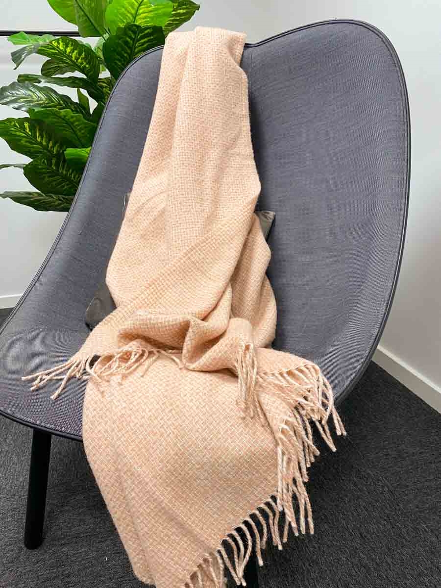 Home » Interior Design » Decorations » Throws Wool Throw - 100% New Zealand Wool - Heather Peach - 130x180 cm - HØIE Save40% Høie Of Scandinavia 136,4981,99EURSave 55,- Few in stock Quantity Add to basket See more from: Høie Of Scandinavia Item number: 9186 Do you have questions about the product? Wool Throw – HØIE100% New Zealand WoolSize: 130x180 cm Size: 130x180 cm Type: Wool Throw Colour: Peach Design: Heather Peach Material: 100% New Zealand Wool Weight: 700 g/m² Brand: HØIE Wash: Hand wash with enzyme-free detergent Dry: Must be laid flat to dry Certification: STANDARD 100 by OEKO-TEX® Certification: Woolmark® (Guaranteed pure wool products that meet quality standards set by The Woolmark Company) Experience true Nordic comfort with the Høie wool throw Indulge yourself with the comfort and warmth of the Høie wool throw. Crafted from 100% Norwegian wool, this throw offers a genuine and natural sensation that is difficult to replicate. The natural properties of the wool make it self-cleaning and durable, ensuring enjoyment for many years. Norwegian wool The Norwegian wool used in this throw is renowned for its high quality and durability. The natural lanolin content in the wool provides self-cleaning properties, meaning it rarely needs washing. This feature makes the wool throw easy to maintain and extends its lifespan. Wool is also an excellent insulating material, keeping you warm in winter and cool in summer. Design The wool throw is designed in a peach colour that captures the essence of Scandinavian style. The simple and timeless design ensures the throw complements any home, regardless of interior design. Additionally, the wool throw is Woolmark certified, guaranteeing a product that meets the highest quality standards for wool. Explore a range of similar products in the Textiles category. Return to Throws Customers also bought 3 pcs. Chef's tea towels - 50x100 cm white tea towels with blue chequered pattern In stock 12,4910,99EUR Add to basket Decorative cushion for children - 40x40 cm - Controller - 100% Cotton - Borg Living In stock 27,4913,99EUR Add to basket Hello Kitty Towel - 70x140 cm - 100% Cotton - Soft Bath Towel with the Cute Hello Kitty In stock 27,4917,99EUR Add to basket Wool throw - 100% New Norwegian wool - Melange grey - 130x200 cm - Arctic In stock 81,9954,49EUR Add to basket Wool throw - 100% New Norwegian wool - Melange dark grey - 130x200 cm - Arctic In stock 81,9954,49EUR Add to basket Artificial reed grass - Height 90 cm - Decorative green reed grass - Artificial plant In stock 81,9934,49EUR Add to basket