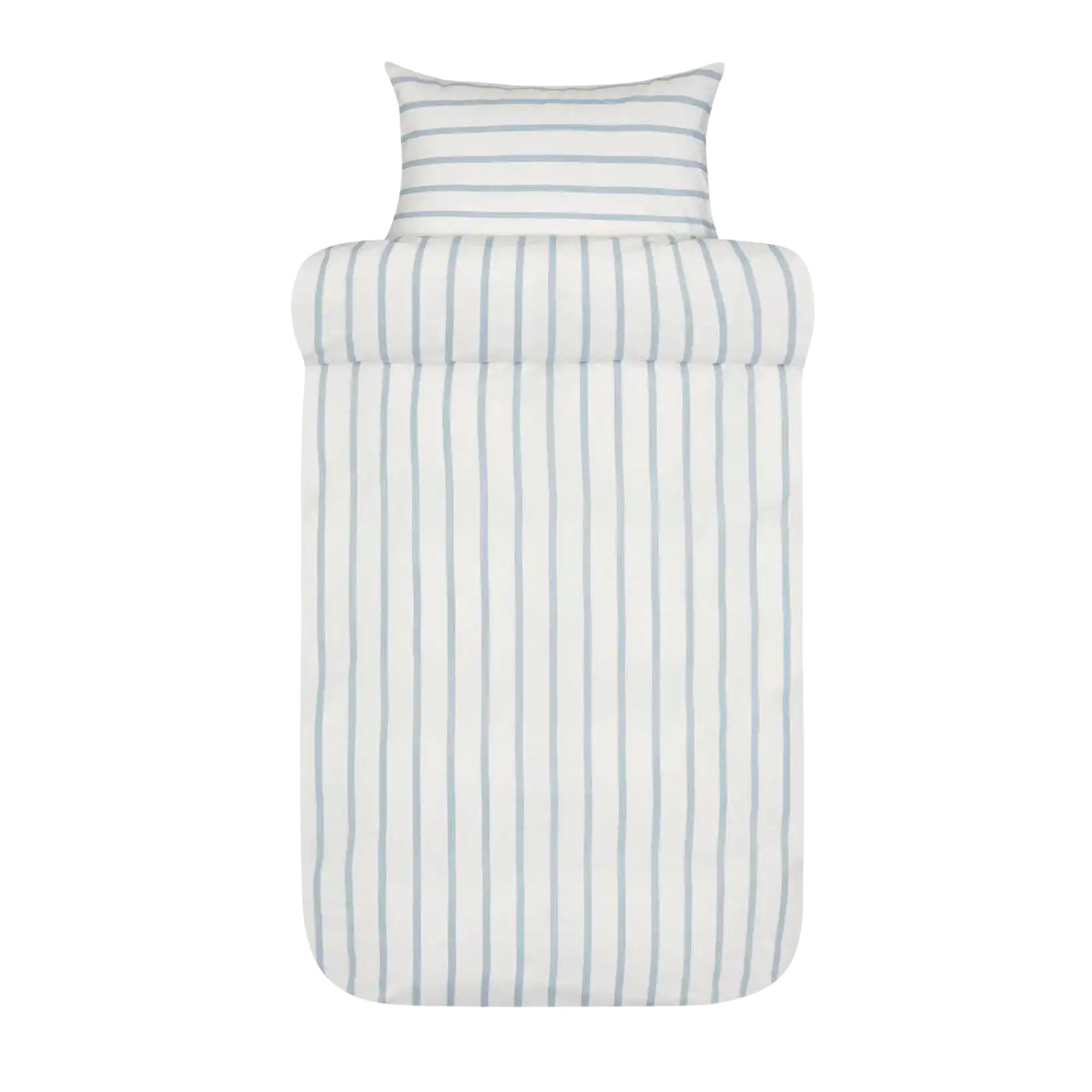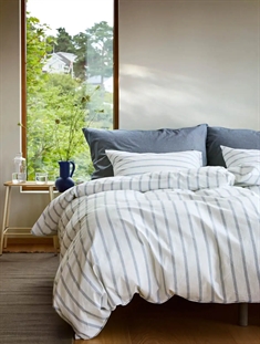 Home » Bedding » Single bedding » Single bedding 140x200 cm Woven crepe bedding 140x200 cm - 100% soft cotton - White with blue stripes - Seersucker bedding - Eilert Høie Of Scandinavia Save34% Høie Of Scandinavia 81,9954,49EURSave 28,- In stock Quantity Add to basket See more from: Høie Of Scandinavia Item number: 8037-1 Read our bedding guide See our large selection of sheets Do you have questions about the product? OEKO-TEX® certifiedSoft, light and airyExclusively airy woven crepe Duvet cover: 140x200 cm Pillowcase: 1 pc á 60x63 cm Material: 100% soft cotton - Woven crepe Weave: 200TC Seersucker (Thread count = number of threads per square inch) Colour: White with blue stripes Design: Eilert denim blue Brand: Høie of Scandinavia Closure: Duvet cover with zipper, pillowcase with overlap Wash: 60°C Tumble dry: Yes Ironing: No Certification: STANDARD 100 by OEKO-TEX® (19.HIN.85821). Your guarantee that the product is free from harmful chemicals. The extra fine cotton yarns create a delicate crepe weave. Perfect for those who love the soft and crisp feel. In woven cotton crepe made from 100% cotton, unique air pockets are created in the weave. The crepe weave is warm in winter and cool in summer, giving a soft and crisp crepe feel wash after wash. A classic that does not require ironing. This striped bedding is produced from 100% soft cotton using the Seersucker weaving method, also called cotton crepe. This weave produces the wrinkle effect and creates small air pockets in the material, making the bedding feel light, airy and often cooler than other types of materials. In summer the bedding will feel airy, and in winter you will notice the warmth from the soft cotton, which is a unique advantage that this lovely combination of material and weave provides. The bed set should not be ironed, as it has its air pockets in the weave itself. Bed linen with this type of weave is particularly good for those who sometimes feel warm at night; here the bedding can add increased breathability and high absorbency. Buy pillowcases for your extra pillows here Freshen up your bed and bedroom with a beautiful and lovely set of bedding like this. At the same time, take the opportunity to ensure maximum sleeping comfort by adding a new soft sheet of high quality. You will find our large range of quality sheets here Høie is a Scandinavian brand that stands for tradition united with innovation. The company has existed since 1850 and over the years has helped shape and develop Scandinavian textiles and design. Bedding from Høie is everyday luxury that everyone deserves. Return to Single bedding 140x200 cm