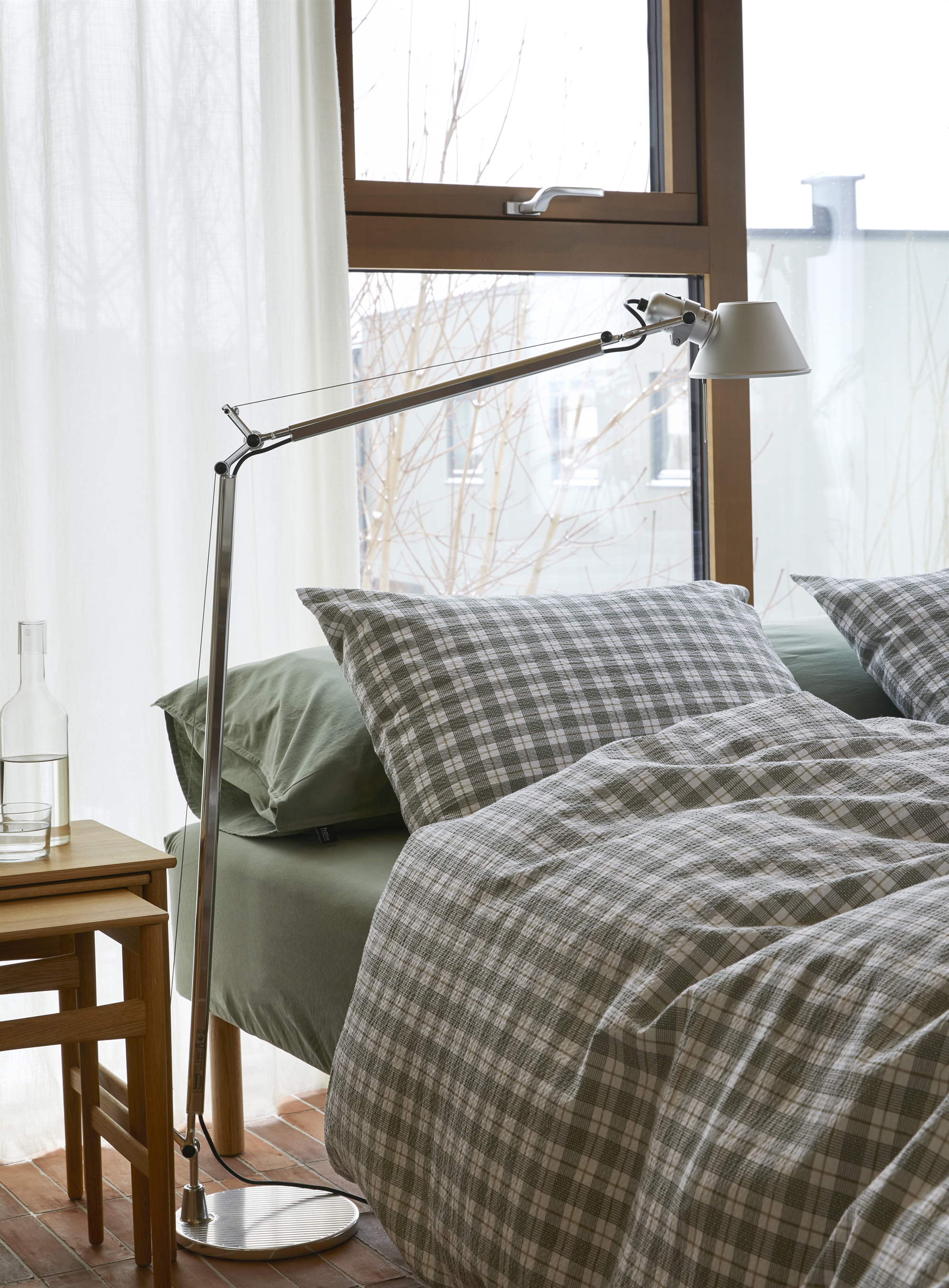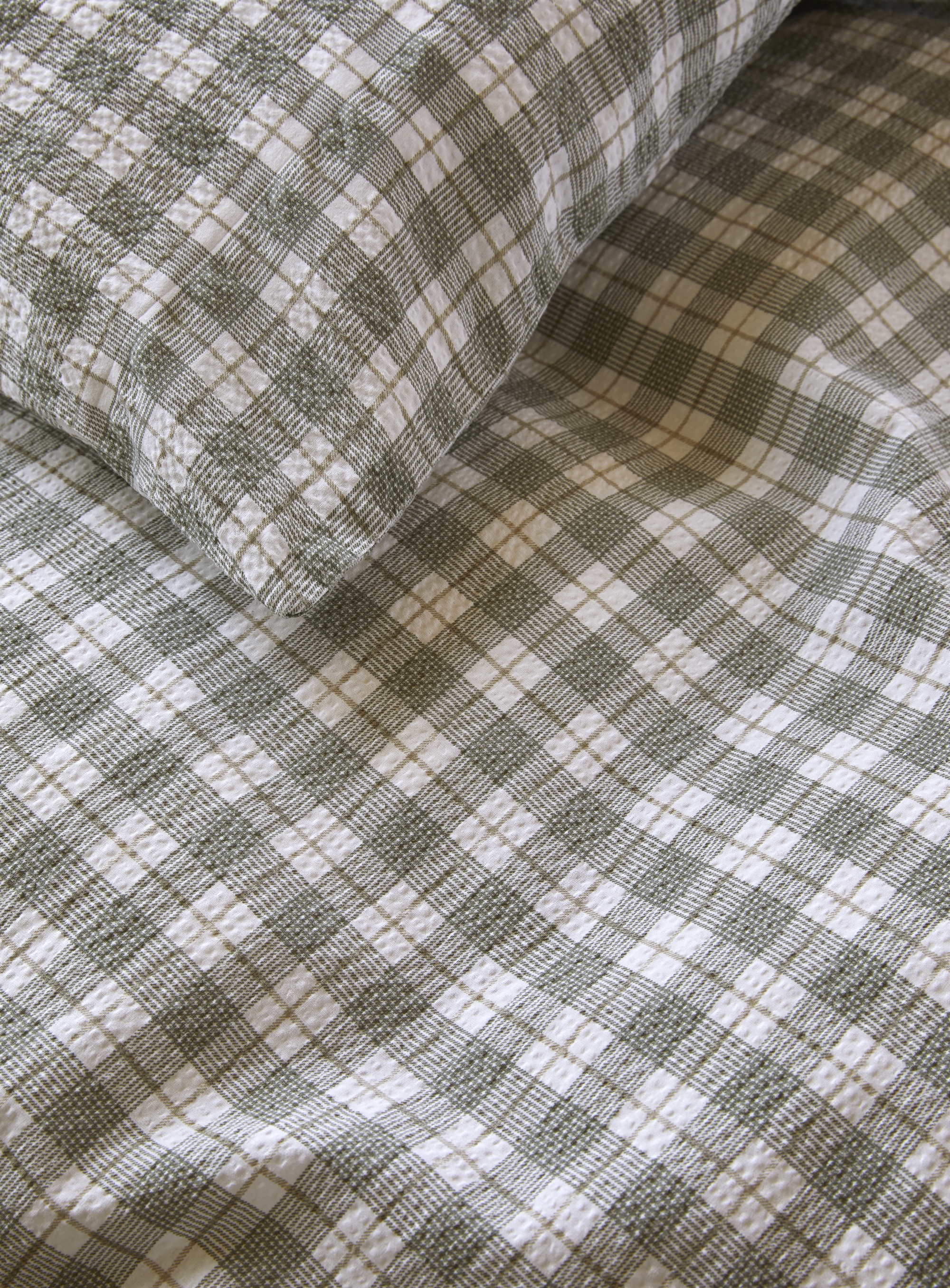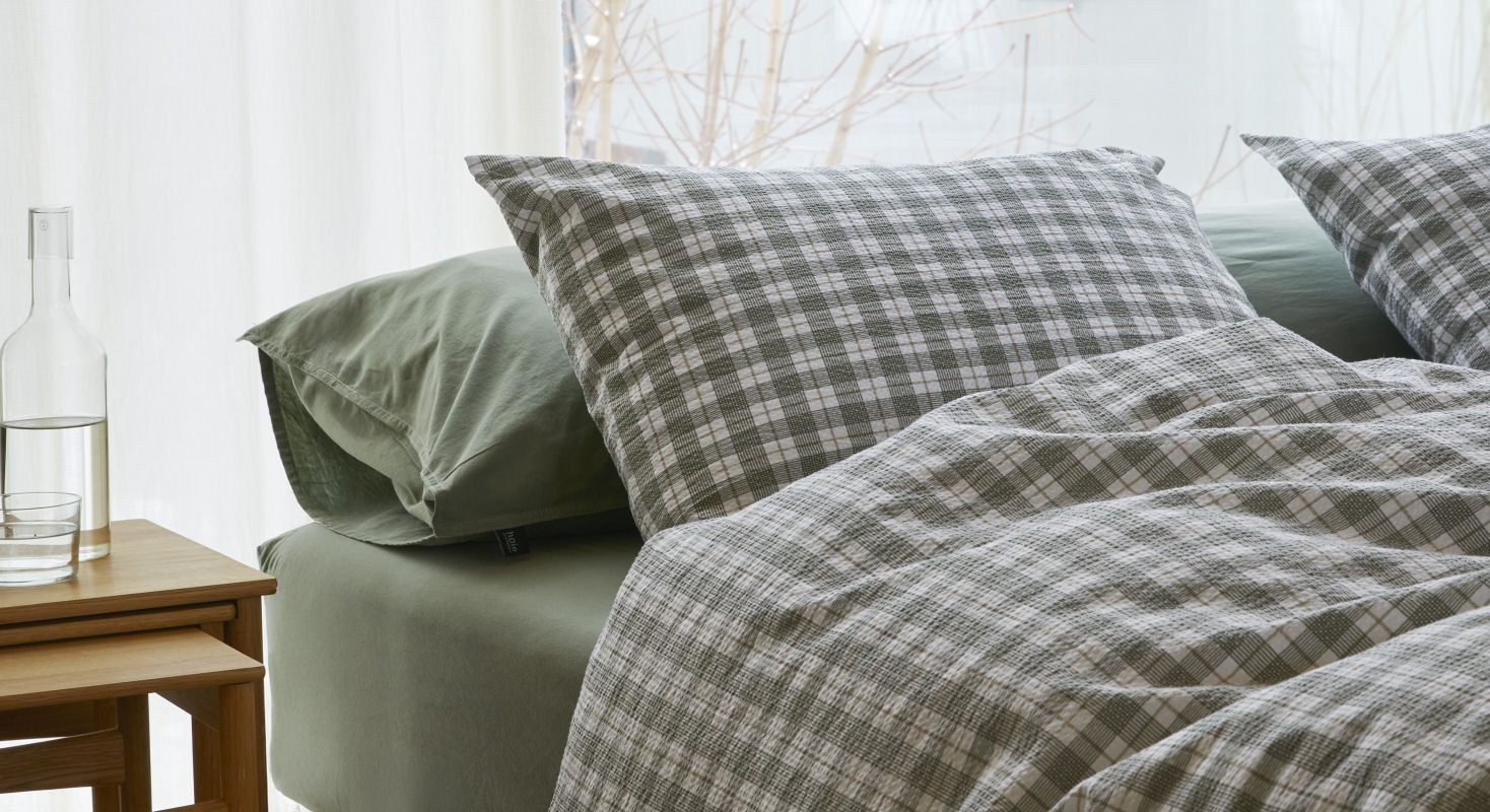 Home » Bedding » Single bedding » Single bedding 140x200 cm Woven crêpe bedding 140x200 cm - 100% soft cotton - Green with checks - Seersucker bedding - Kyrre Høie Of Scandinavia Save34% Høie Of Scandinavia 81,9954,49EURSave 28,- In stock Quantity Add to basket See more from: Høie Of Scandinavia Item number: 8341-1 Read our bedding guide See our large selection of sheets Do you have questions about the product? OEKO-TEX® certifiedSoft, light and airyExclusive airy woven crêpe Duvet cover: 140x200 cm Pillowcase: 1 pc. à 60x63 cm Material: 100% soft cotton - Woven crêpe Weave: 200TC Seersucker bedding (Thread count = number of threads per square inch) Color: Green with checks Design: Kyrre subdued green Brand: Høie of Scandinavia Closure: Duvet cover with zipper, pillowcase with envelope closure Washing: 60° Tumble dry: Yes Ironing: No Certification: STANDARD 100 by OEKO-TEX® (19.HIN.85821). Your guarantee that the product is free from harmful chemicals. The extra fine cotton yarns create a delicate crêpe weave. Perfect for those who love the soft and crisp feeling. In woven cotton crêpe in 100% cotton the unique air pockets are created in the weave. The crêpe weave is warm in winter and cool in summer, and gives a soft and crisp crêpe feeling wash after wash. A classic that does not require ironing. This checked Kyrre bedding is produced from 100% soft cotton using the weaving method Seersucker bedding, also called cotton crêpe. This weave gives the wrinkle effect and creates cavities for small air pockets in the material, which makes the bedding feel light, airy and often cooler than other types of materials. In summer the bedding will feel airy, and in winter you will be able to feel the warmth from the soft cotton, which is the unique advantage this lovely combination of material and weave provides. The bedding set should not be ironed, as it has its air pockets in the weave itself. Bed linen with this type of weave is especially good for those who sometimes experience being hot at night; here the bedding can add increased breathability and high absorption. Buy pillow covers for your extra pillows here Refresh the bed and bedroom with a beautiful and lovely bedding set like this. Also use the opportunity to ensure maximum sleeping comfort by adding a new soft sheet of high quality. You will find our large selection of quality sheets here Høie is a Scandinavian brand that stands for tradition combined with innovation. The company has existed since 1850 and over the years has helped shape and develop Scandinavian textiles and designs. Bedding from Høie is everyday luxury that everyone deserves. Return to Single bedding 140x200 cm